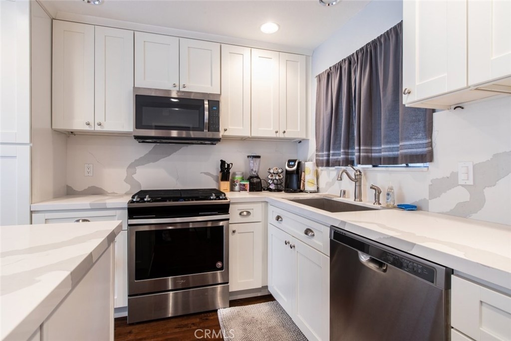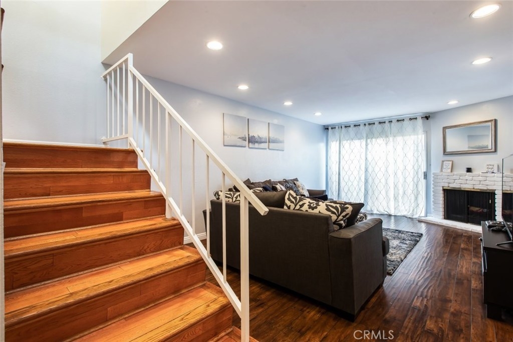 The perfect place to start making new memories! Located in a very sought after neighborhood in Northridge resides a remarkable townhome that has a private 2-car garage and a floor-plan that consists of 2 bedrooms and 2.5 bathrooms. Eye-catching details include the stunning flooring decorated with thick baseboard moldings, smooth ceilings that are equipped with recessed lighting and other elegant lighting fixtures. The first floor features a spacious living room with a fireplace and easy access to your private patio where you can add outdoor seating. There is a formal dining room, guest bathroom and a charming kitchen. In the kitchen you will find a wonderful space with sleek countertops, an embellished backsplash, along with beautifully crafted cabinets, stainless steel appliances and a nice sized center Island, perfect for bar stools. On the second floor you have 2 master bedrooms, both with ample closet space and a private en-suite bathroom. This unit is in a well-kept complex with controlled accessed entry and a community pool with a spa. Located near Starbucks, Home Depot, schools, house of worship and much more!
