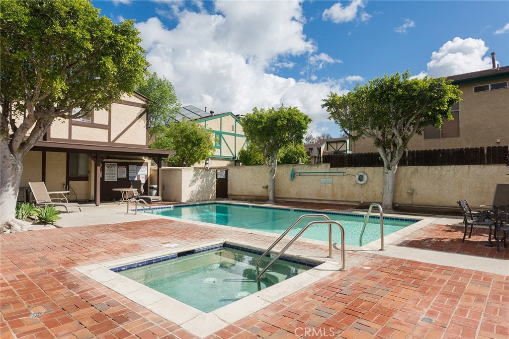 Walk into a wonderful surprise! A charming 2-bedroom 2.5 bath home offers 1280 sqft of living space, open floor plan & 2 car garage! This adorable condominium is full of French country charm, and impressive high-quality upgrades. Step inside to an open family room with wood-laminate floors, recessed lights, beautiful chandelier and a cozy brick fireplace. The family room flows into to the elegant dining room with a lovely chandelier. Stunning new kitchen features a unique & sexy white and grey veins quartz counters, all new stainless steel appliances, soft close cabinets, utility sink, and gorgeous large center island. Also just upgraded powder room is located downstairs for convenience. Wooden stairway with natural skylight takes you upstairs to the master bedroom, guest bedroom & 2 additional baths. Guest bathroom has been upgraded with porcelain tiles floors, new toilet and sink. Beautiful master bedroom has vaulted ceilings, elegant chandelier, wood laminate floor and his’ n’ her closets. All new master bathroom features porcelain tiled floors & shower as well as new light fixtures, toilet & vanity w/dual sinks. A cozy outdoor patio has room to enjoy and relax and for outside dining. The gated community is quaint and has paved road and features such as pool, tennis court, & low HOA compares to most. Absolutely charming! Come see it today & fall in love!