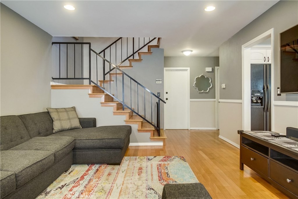 New Listing! Perfect Townhouse centrally located in Northridge. Gated community at Louise Townhomes West. This 2 bedroom 2.5 bath in a highly sought after complex boasts a wonderful design of flow and convienience. Features include crown molding, recessed lighting, granite counter in kitchen, real hardwood floors throughout, double entry french doors off dining area leads to a private patio to BBQ or lounge. 2 bedrooms upstairs including master bedroom with vaulted ceiling, master bath with double closet space, half bath downstairs, fireplace in family room as well as central heat and air. Lower HOA dues than most. Ammenities include tennis court, pool and spa. Close to parks, schools, shopping, restaurants and freeways. Come show and sell before it is gone.