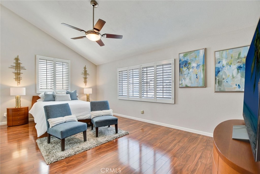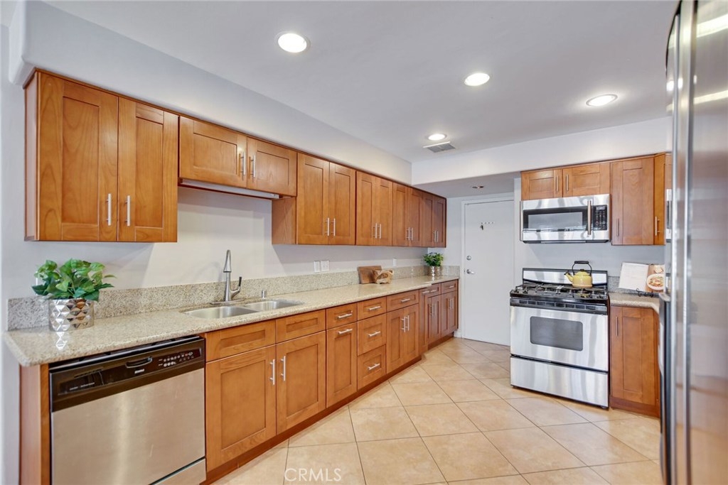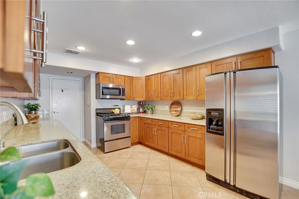 Absolutely STUNNING Upgraded Condo in a privately gated community with pool & tennis court amenities. One of largest condos Northridge has to offer, 3 extremely large bedrooms including an amazing master bedroom suite with vaulted ceilings. Chefs Kitchen has been upgraded from top to bottom with upgraded modern cabinet, polished upgraded hardware, granite countertops, stainless steal appliances, and recessed canned lighting. Off the kitchen is an oversized dining area comfortable enough to seat 6 people. Gorgeous family room with open layout, lovely gas fireplace, recessed lighting, and 2 sliding doors with upgraded plantation shutters that lead out to the beautiful private patio. Home was just COMPLETELY freshly painted and has newer laminate floor. Other features include plantation shutters throughout the whole home on all the windows, mirrored closets, and ceiling fans in all the bedrooms. Enjoy the convenience of an attached 2 car garage with direct access into the home and laundry area in the garage. Community features include private entry gate for only homeowners, private community pool, and private tennis court. A condo as beautiful and as upgraded as this one is hard to find, dont miss out on this opportunity. WELCOME HOME