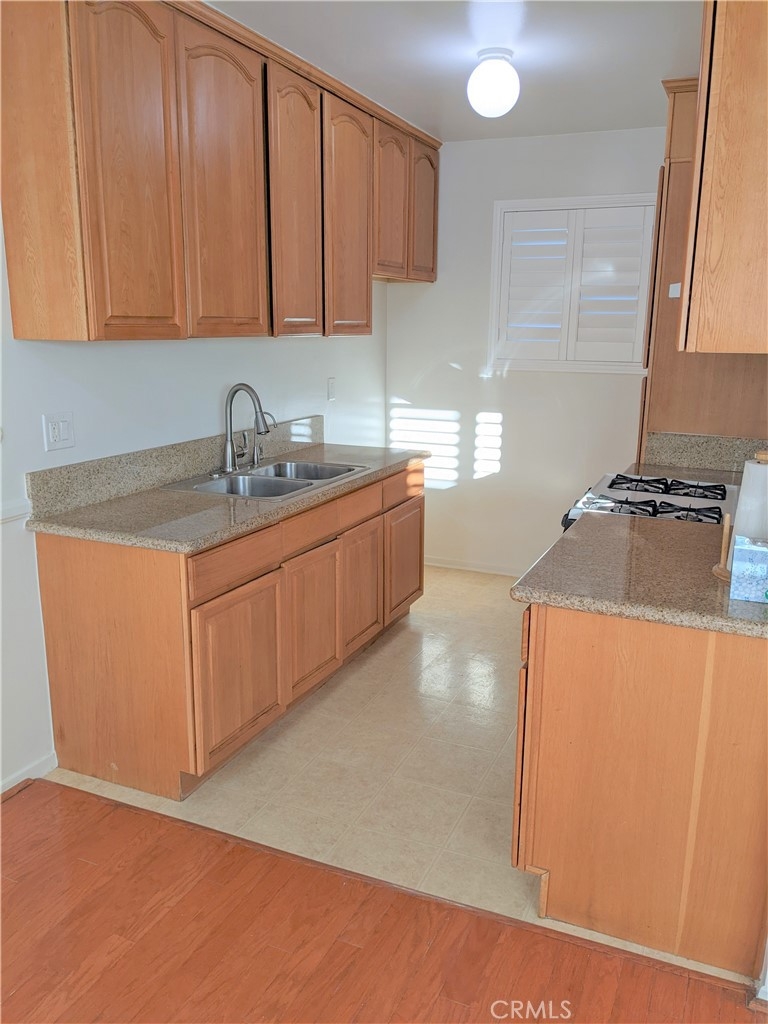 This NICE AND BRIGHT 2 BEDROOM SINGLE LEVEL, 2nd floor CONDO UNIT is in a gated community. This unit with its plantation shutters makes for an elegant look. The wood/wood-like floorings all throughout together with granite kitchen countertops give this unit its sharp and snappy appearance. You have NO neighbors above or below! Newly painted, neutral color walls all throughout make this an excellent canvas to make it your own. The community laundry area is very conveniently located just under the front stairway. The complex is also PET FRIENDLY with a dog park as well as community pool and spa. The pathways in the complex have lush vegetation for nice walks in the afternoons.