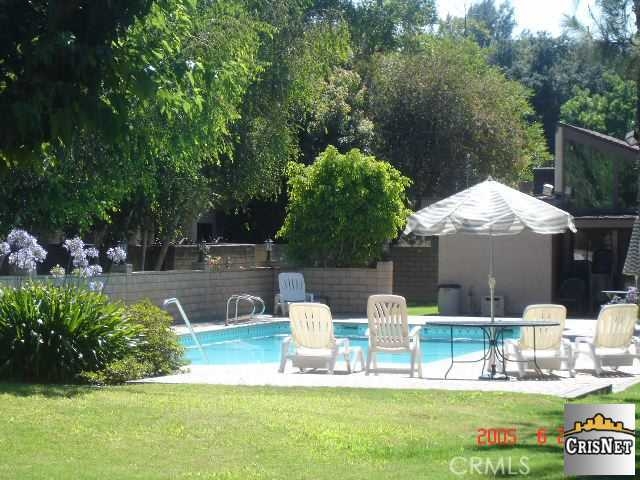 great townhouse in move-in condition in northridge!quiet building-low hoa!corner unit boasts newer carpet and fresh paint. 2 spacious bedrooms.open floorplan w/ fireplace in living room and hardwood floors throughout the downstairs.2 patios. huge attached garage w/ rv access & lots of storage.great starter home. pool & rec room.