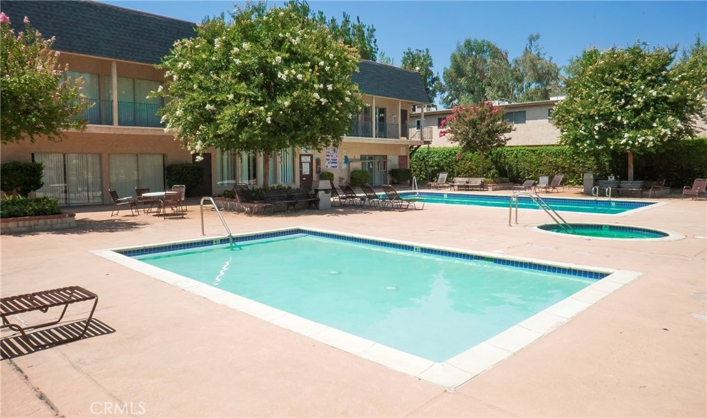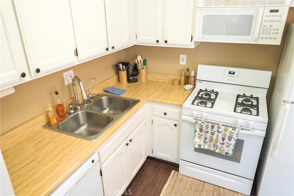 FHA approved! Welcome home to this turnkey 2 BR/1.5 BA townhome located in desirable, gated Balboa Village. Upgraded with newer laminate flooring downstairs, newer A/C, decorator colors throughout, deep base moldings, beautiful hardware and lighting fixtures. Kitchen has been upgraded to include a gas range, built-in microwave, front-loading washer/gas dryer, SS sink, cabinet upgrades and breakfast peninsula. ½ Bath includes newer tile floor, pedestal sink, low-flush toilet, wall cabinet, lighting and mirror. Full Bath has newer counters, fixtures, abundant upgraded cabinets, medicine cabinet, tile tub enclosure, tile flooring in a beautiful Venetian pattern, and crown moldings in both Baths. Upstairs Bedrooms, Hall and stairs are carpeted. This townhome has abundant storage! Enjoy under the staircase storage, Hall closet plus linen closet, huge Bedroom walk-in closets with organizers, built-in Dining Room cabinets, and generous full Bath cabinets. There is a private, fenced, rear patio. 2 covered, tandem parking spaces are deeded to the unit. Community amenities include a large pool, shallow wading pool, spa, game and recreation rooms, 5 community laundries, and lovely shady green space offering grass areas. One full-time employee is currently updating the grounds sprinkler system and landscaping. A hired security company does a complex walk-through 3-4 times each evening.