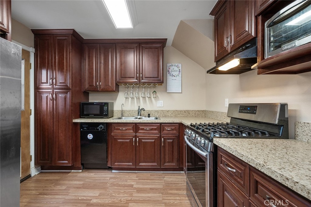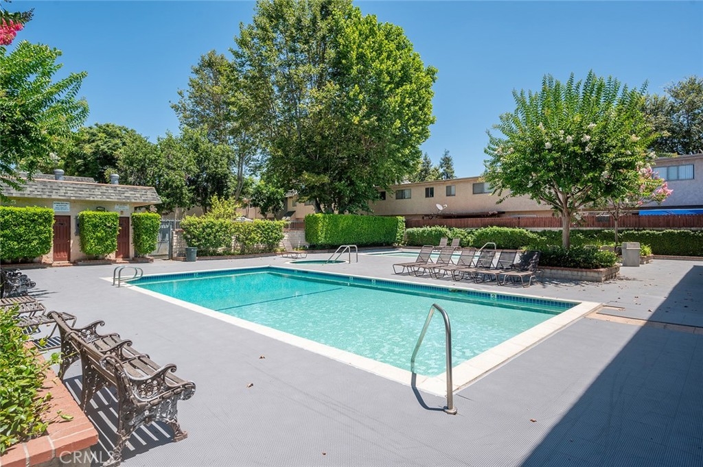 Stunning Townhome in Gated Balboa Village – Move-In Ready! Welcome to this beautifully updated 2-bedroom, 1.5-bathroom townhome in the highly sought-aftergated community of Balboa Village in Northridge! Updated dual pane windows and newer HVAC System! Offering a blend of comfort, style, and convenienceincluding inside-unit laundry! Step inside to discover bright, open living spaces with recessed lighting, crown molding, and smooth-finish ceilings. The spaciousliving and dining areas are filled with natural light, creating an inviting atmosphere perfect for relaxing or entertaining. Enjoy morning coffee or afternoonbarbecues on the large private enclosed patio! Beautiful wood laminate flooring on the staircase and tiled floors upstairs add a touch of elegance and durability.The well-appointed kitchen features granite countertops, a stainless steel gas range, a built-in refrigerator cabinet, and a dishwasher—a dream for home chefs! Aconvenient half bath downstairs adds extra functionality, while the full bathroom upstairs boasts a stylish vanity, updated lighting fixtures, and a tiled tubenclosure. The primary bedroom is a peaceful retreat with large windows, a ceiling fan, and a generous walk-in closet. Both bedrooms feature ample closet spaceand encased windows for a polished look. Plus, there's plenty of extra storage, including a bonus storage space under the staircase. Living in Balboa Village meansenjoying lushly landscaped grounds with mature trees, creating a tranquil, park-like setting. The Community amenities include landscaped grounds with lush,green lawns and mature shaded trees, a large pool, shallow wading pool, jacuzzi spa, game and recreation rooms, 5 community laundries, and very pet friendlywith areas to walk! Conveniently located near shopping, dining, and entertainment options, this home provides easy access to major freeways and top-ratedschools. Whether you're commuting, running errands, or enjoying local parks, everything you need is just minutes away. Don't miss this incredible opportunity toown a move-in-ready townhome in one of Northridge’s most desirable communities! Call your Realtor and schedule your private tour today!