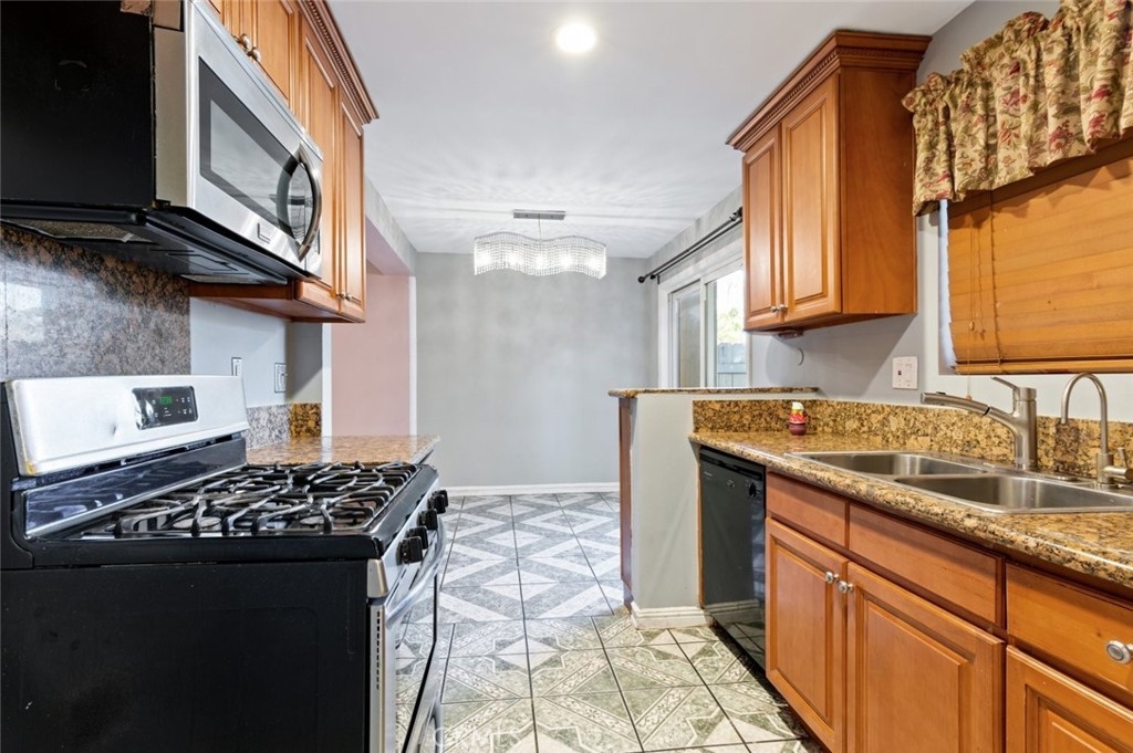 In the heart of the Northridge, minutes from shops and restaurants, sits a 1,493 sqft, 3-bedroom, 2-bathroom condominium, located in a large community complex, with lots of potential. A paved walkway in the courtyard, leads to the front entrance of the unit and upon entering you are greeted to tile flooring through the open floor layout of the living space. An easy flow to the dining area that leads to the lengthy kitchen, featuring granite countertops, walnut toned cabinetry, and built-in appliances. Stairs right across the front door that ascend to the second-floor hallway and lead to a bathroom shared by 3 bedrooms, all of which have carpet flooring and one of which has a walk-in closet. A front balcony with entry from the living room and a backyard with entry from the dining area, both of which are perfect spaces to set up lounging furniture. Home includes an individual laundry room with washer/dryer hookup and detached 1 car parking space which is #99.