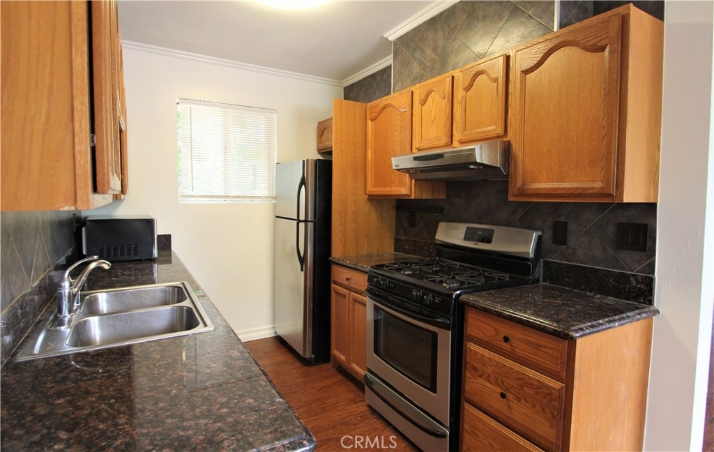Welcome Balboa Village Condominiums featuring this 2 bed/1.5 bath light, bright and spacious, upstairs single floor corner unit. This unit has been recently upgraded, from top to bottom. Spacious living room area with sliding doors to a cozy balcony. Fresh paint throughout, newer laminate floors and baseboards, smooth ceilings. The kitchen has wood cabinets, granite countertops and stainless steel appliances. The bedrooms are spacious with ample closet space and plantation shutters. Both bathrooms have been completely remodeled with new floors, bath tile surround and cabinets. There are brand new cabinets in the hallway for linen storage. Monthly HOA includes insurance, hot/cold water, trash, community pool, Jacuzzi and recreational room. Community laundry is downstairs right below the unit. Pet friendly community. A gated community facility has extra layer of security with HOA paid security patrol. Complex offers ample street parking as well as a covered tandem parking spot.. Fairly new roof installed for entire building in 2012, Brand new Central Air Condition unit installed in last 12 months. Close to Commuter Express / LAX Airport buses. Easy access to schools, parks, shopping/mall, freeway & transportation.