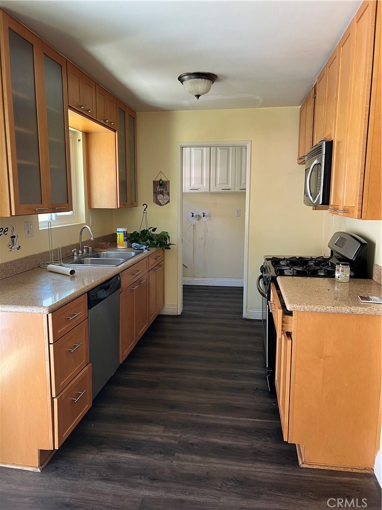 Beautiful 2 -Story Northridge condominium with Laminated flooring. Granite countertops in kitchen. All 3 bedrooms are upstairs. Gated entry to the building. FHA record shows it is FHA approved.2- covered tandem parking spaces. Separate indoor laundry room.