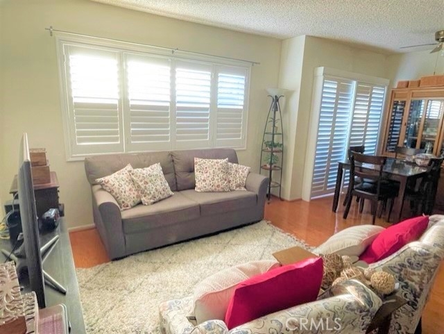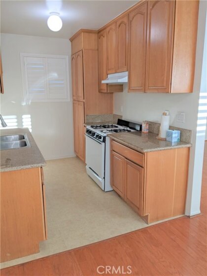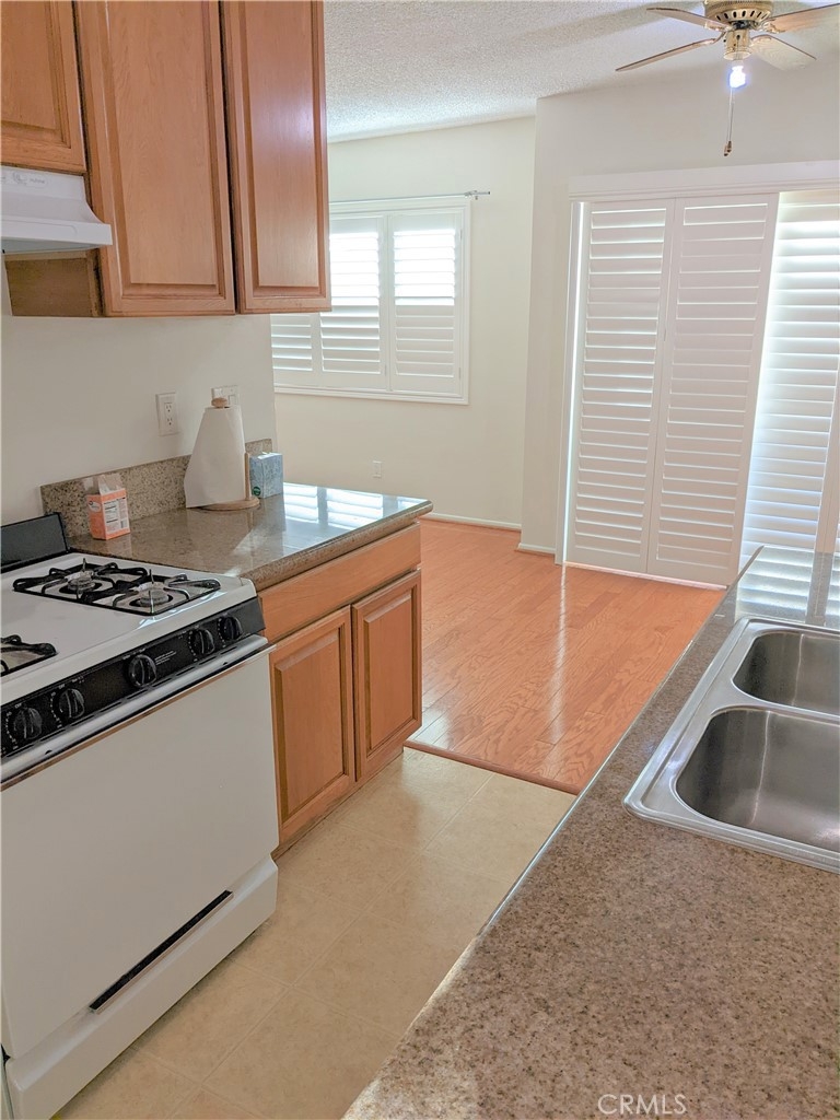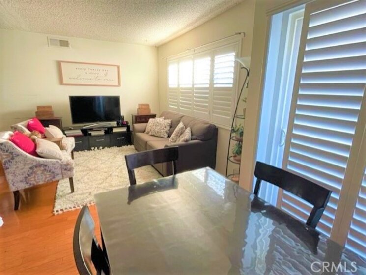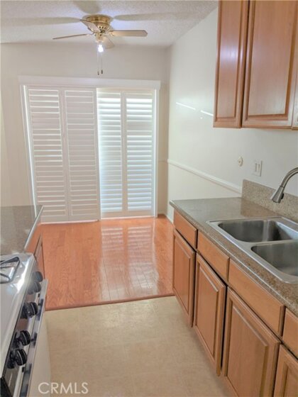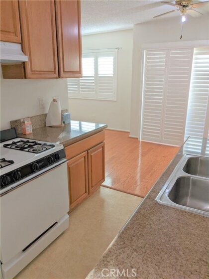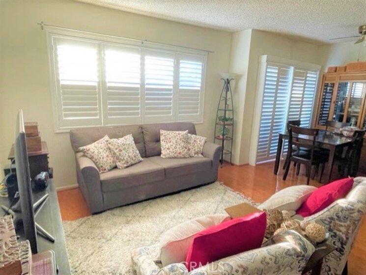 This NICE AND BRIGHT 2 BEDROOM SINGLE LEVEL, 2nd floor CONDO UNIT is in a gated community. This unit with its plantation shutters makes for an elegant look. The wood/wood-like floorings all throughout together with granite kitchen countertops give this unit its sharp and snappy appearance. You have NO neighbors above or below! Newly painted, neutral color walls all throughout make this an excellent canvas to make it your own. The community laundry area is very conveniently located just under the front stairway. The complex is also PET FRIENDLY with a dog park as well as community pool and spa. The pathways in the complex have lush vegetation for nice walks in the afternoons.