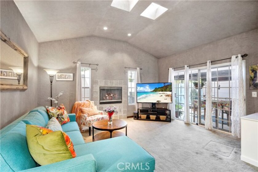 Welcome to The Countryside at Northridge! Beautiful two story 3 bedroom 2.5 bathrooms detached townhome with 1559 sq ft in tranquil gated community. Located in prime area of Northridge this home offers a flowing floor plan and sunny interior. Welcoming entry way with travertine flooring lead to large living room with venetian luxe like walls, skylight, gas fireplace, vaulted ceilings, and sliding doors to a private patio area offering lots of space for grilling or outdoor enjoyment. The open dining area overlooks the kitchen which features new refaced black cabinetry with white tile countertops, and tile flooring. Kitchen also gives side yard access to private patio. Private Patio is Extra Large size. One of the best locations in the entire complex! The skylight over the staircase with wrought iron railings lead to 3 bedrooms located all upstairs. The master suite offers volume ceilings with walk-in closet, and full master bathroom with tub & dual vanity sink. Two additional large sized bedrooms with lots of closet space complete upstairs. Other features include newly updated A/C unit, private 2 car garage, convenient location close to great public schools and shops.
