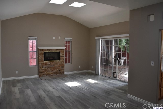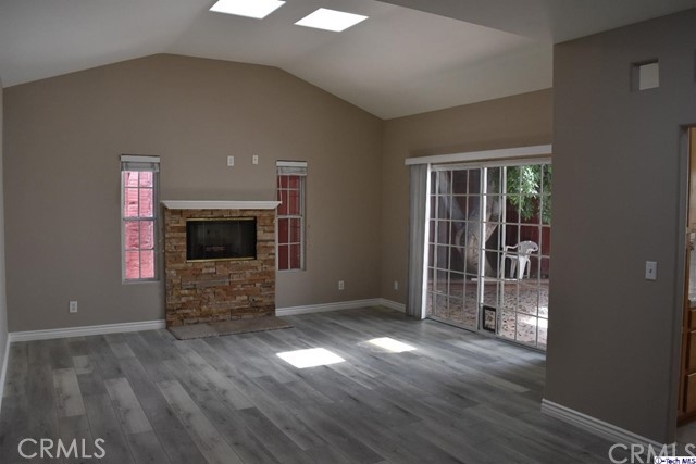 Beautiful prime Northridge townhome. These spacious 3 Bedrooms + 2.5 bath charmer with an amazing floor plan. Bright and open floor plan, this home features an attached 2 car garage with direct access, living area w/ fireplace, vaulted ceilings throughout, formal dining room, guest bathroom downstairs, beautiful laminate wood floors. The master suite has vaulted ceilings and is complimented with a master bath w/ dual sink vanity, large walk in closet, standing shower and soaking tub. Another wonderful feature of this home is a private back yard for entertaining family and friends. Plenty of closet space and storage. Gated Community, Low HOA, and walking distance to the best schools in Northridge from elementary all the way to college (CSUN).
