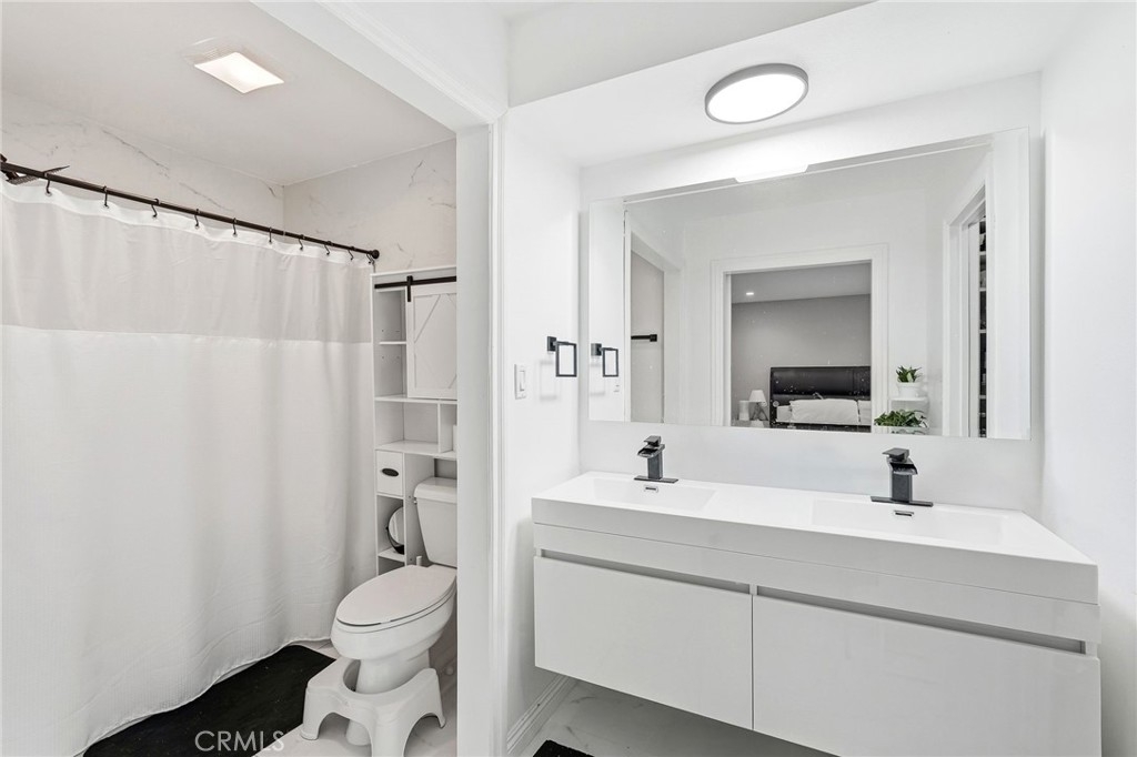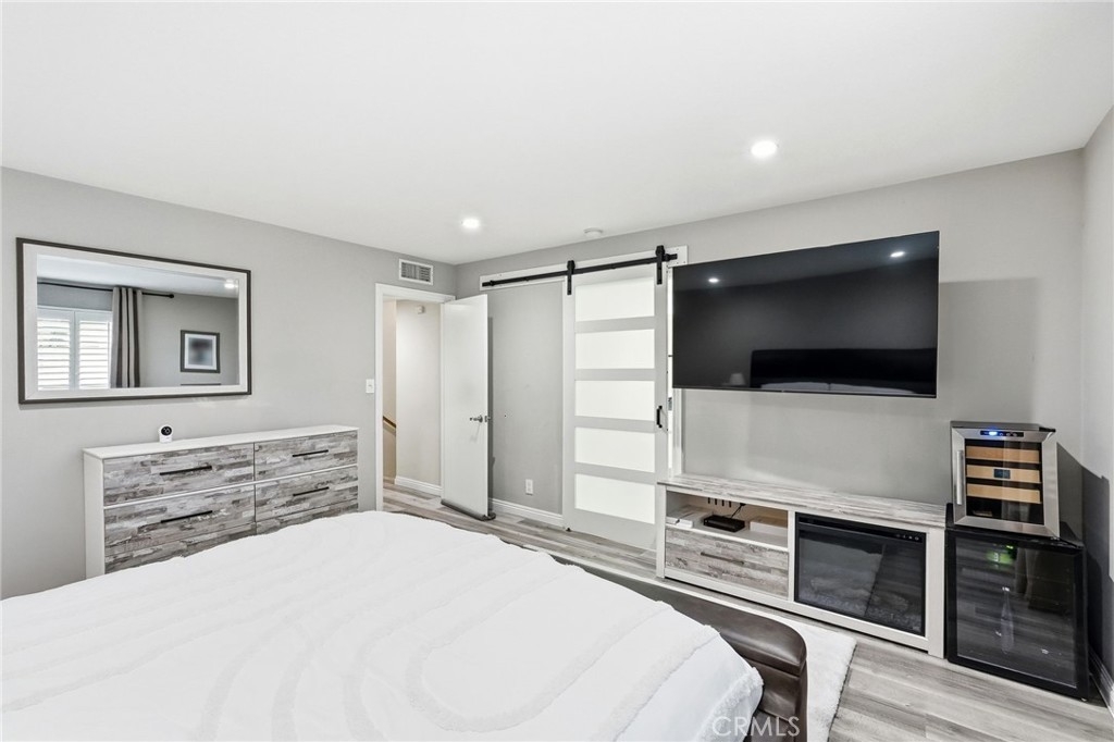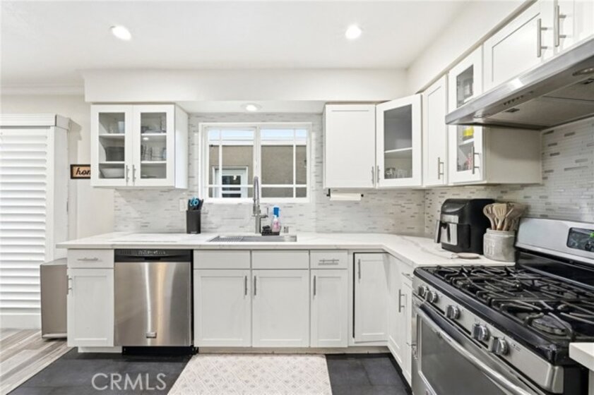 Welcome to this beautifully renovated, move-in ready 2 bedroom, 2.5 bath townhome in the highly desirable Devonshire Village. Expertly renovated throughout, this home blends modern design with functional living. The light-filled living room features wide windows with custom wood shutters, recessed lighting, upgraded gray laminate flooring, wet bar, and a fireplace, flowing seamlessly into the dining area perfect for entertaining. The spacious kitchen boasts quartz countertops, a modern backsplash, glass-front cabinetry, and stainless steel appliances, ideal for cooking and gatherings. Upstairs, enjoy two spacious primary suites, each with generous walk-in closets. The primary suite showcases a fully renovated bathroom with a floating his-and-hers sink, a filtered soft water shower with tub, and marble tile. The second suite offers its own private bathroom with a walk-in shower and ample closet space. A guest half bath is conveniently located on the main level. In-unit laundry, a direct-access two-car garage, and a private patio with TV's hookups perfect for entertaining, morning coffee, outdoor dining, or relaxing evenings. Resort-style amenities including two sparkling pools, a spa, and beautifully landscaped grounds. Perfectly located near CSUN, shopping, dining, freeway access, and the highly regarded Granada Hills Charter High School, this exceptional townhome combines modern upgrades, comfort, and an unbeatable community lifestyle. Priced to sale! A true turnkey opportunity, don’t miss it!
