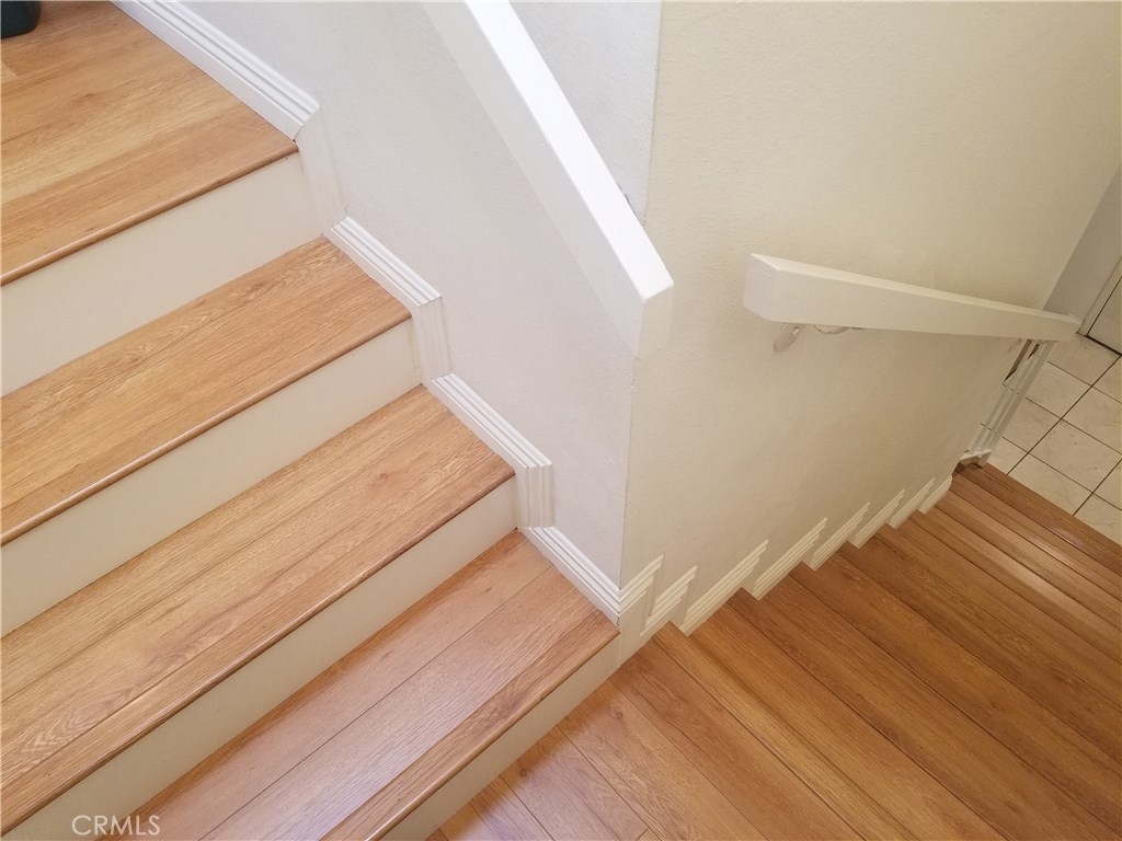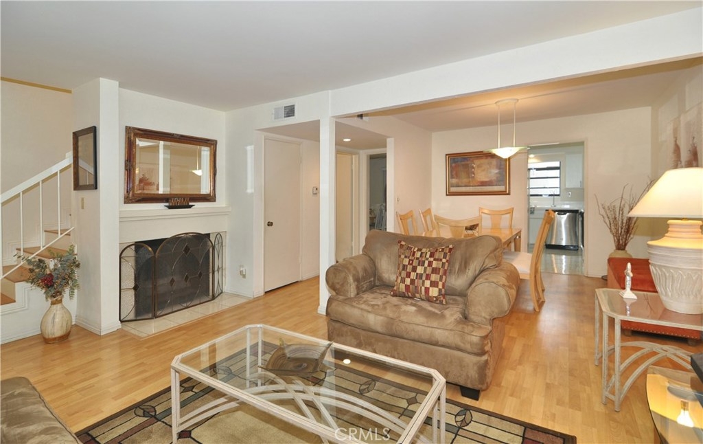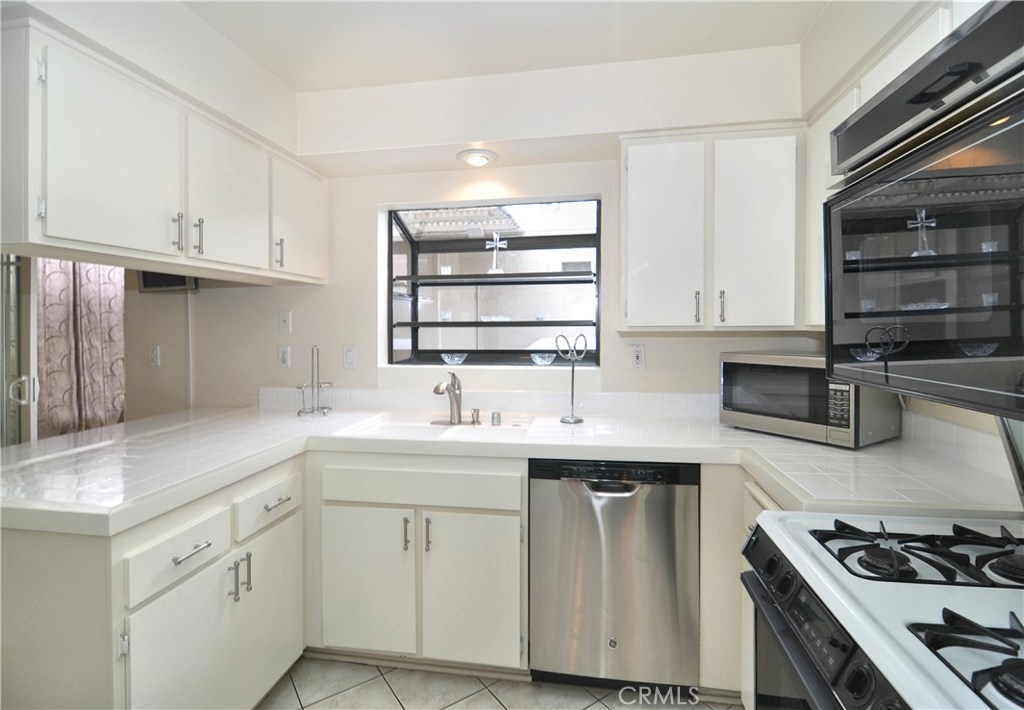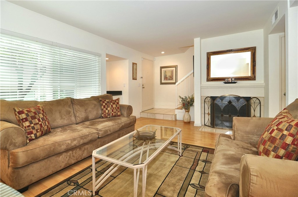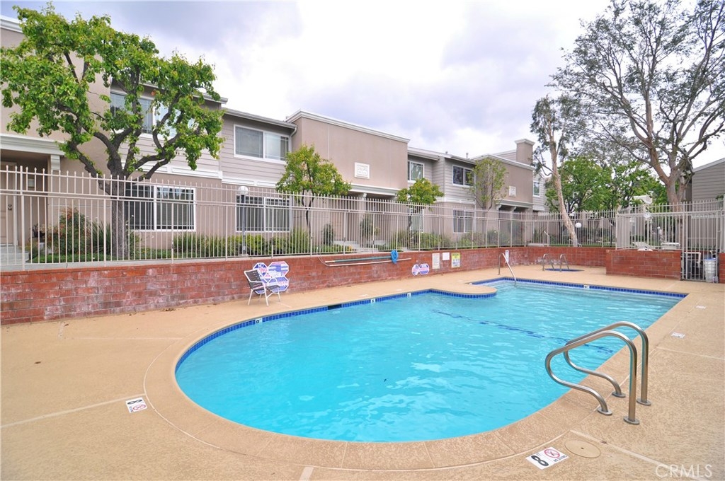 Stunning executive town home located in the highly sought after "Devonshire Village". This well cared for home has a spacious living room with wood like floors, fireplace and bar area. Just adjacent is the formal dining area also with wood like floors. The kitchen has recently resurfaced tile counters and sink, stainless dishwasher, tile floors and has been recently painted with custom cabinet hardware, a garden window that peers out to the large patio between the home and garage. Also, there is a dining area and breakfast counter. Just off of the living room, down stairs is a convenient powder room for guests. The staircase has beautiful wood floors that lead to two spacious bedrooms, each with their own bath and walk in closets. Both bedrooms have neighborhood views. Other features of this amazing home are, dual pane windows, central air and heat, ceiling fans, smooth ceilings, large covered patio and two car garage. The community boasts two pools, two spas, ample parking as well as street parking. The HOA includes EQ insurance, Basic Cable and exterior grounds maintenance. Located in the Highly Acclaimed Granada Hills High School.