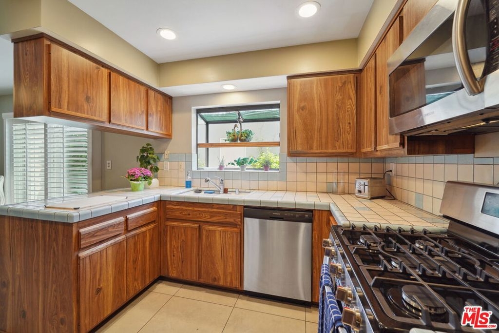Very well maintained condo. Highly coveted 2 bed 3 bathroom "Devonshire Village" townhouse located in the heart of Northridge 2 car garage with side by side parking. Beautiful enclosed patio with inviting landscaping. 2 large ensuite primary bedrooms. The kitchen has a breakfast area and also a separate dining area. Enjoy your summer at one of the two pools. Living room features an open floor plan and cozy fireplace in living room. Formal dining area leads to kitchen with recessed lighting, walnut cabinets & tiled counter tops. Glass sliders with plantation shutters lead to unique brick patio great for entertaining & BBQing (gas hook-up installed). Direct access off enclosed patio leads to private 2 car garage. Downstairs powder room perfect for guests. Each master suite with master bath & large closets. Award winning Granada Hills Charter High School nearby. Complex includes 2 refreshing swimming pools. Low condo fees include: exterior maintenance, water and sewage, fire and earthquake insurance and Spectrum internet and cable tv. Fantastic opportunity waiting for you!