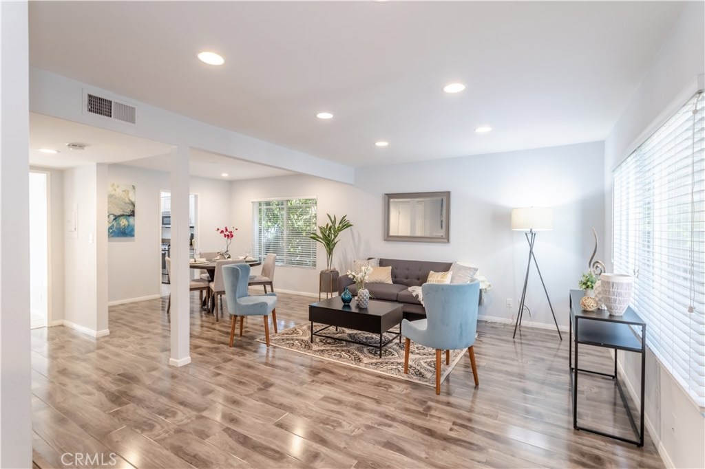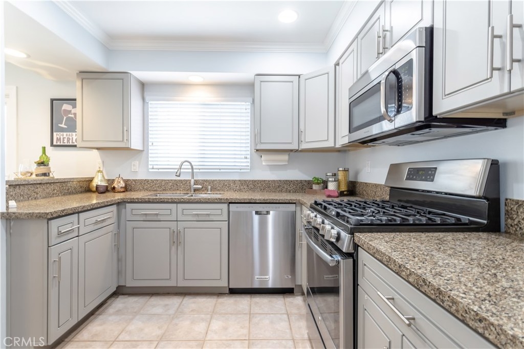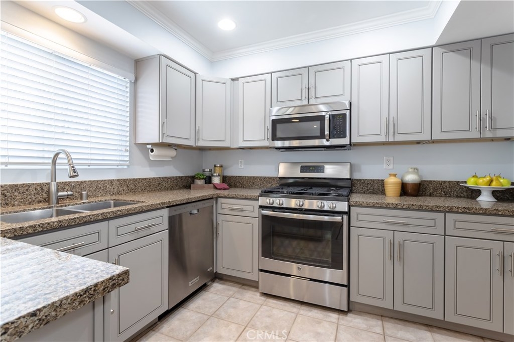 Immaculate..Stunning...Perfect!! Spacious two floor end unit in a quiet development tucked all the way in the back of coveted Devonshire Village community. You will love the excellent floor plan for entertaining. The living room is highlighted by laminate floors, cozy fireplace, recessed lighting, and powder room. There is a formal dining area for dinner parties and a family room/eat-in area off the remodeled kitchen with custom cabinets, stainless steel appliances, granite counter tops and breakfast bar. Upstairs are three roomy bedrooms including your master bedroom with a private attached remodeled bathroom and walk-in closet. Hallway bathroom also has been completely updated. Private and serene patio leads to the 2 car garage and guest parking nearby. HOA includes 2 community pools, spa, earthquake insurance, and park-like maintained grounds. Granada Hills Charter High School boundary. Close to CSUN, restaurants, shopping, fwys, and more.