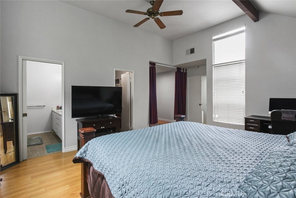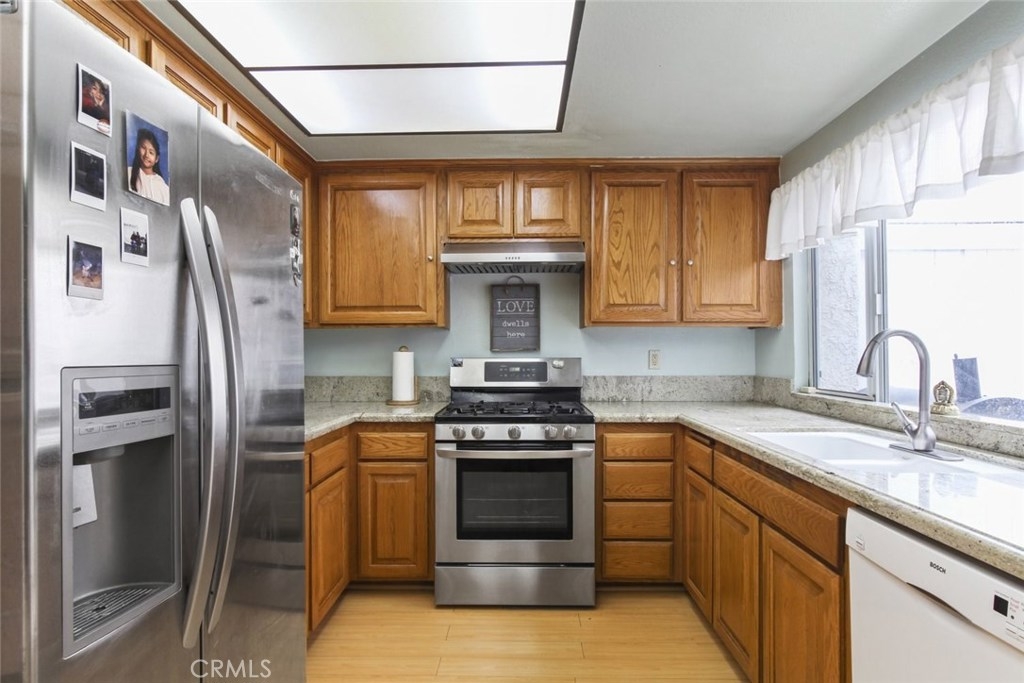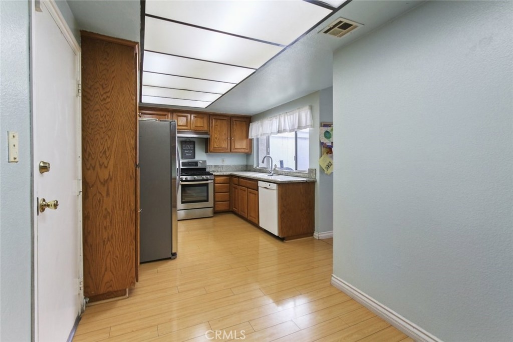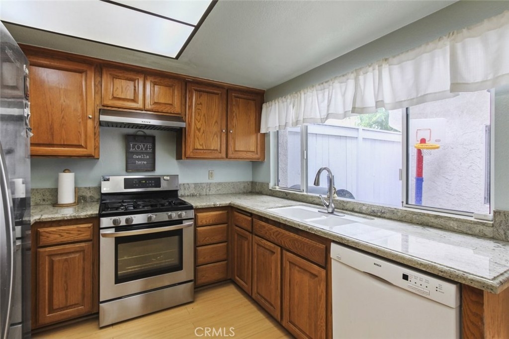 Welcome home to this highly desirable front end unit with 3 bedrooms, 2.5 baths, & 1551 Sq. Ft. Townhome located in a Gated Community - Granada Gardens Complex, walk across to Award Winning Granada Hills Charter High School. This spacious 2 story offers great floor plan, Central AC with Nest Thermostat, Dual Pane Windows, Smooth ceilings throughout, Laminate floors, Recessed lights, Plantation Shutters in Living/Dining Area, Gas Fireplace in Living Area, Front Patio, 2 car attached garage with built-in shelves & cabinets with direct access into the unit. Washer Dryer hookups are in the garage. Kitchen features granite counter tops with wood cabinets and breakfast area w/built-in cabinets & shelves. Large windows in Kitchen overlook a spacious enclosed patio. Upstairs is the Large Master Suite with vaulted high ceilings with walk-in closet, and an additional den area, attached full bath with dual sinks and enclosed tub. Two other bedrooms have spacious closets and sliding doors that lead to a shared large patio. A Full Bathroom is conveniently located outside the other 2 bedrooms. All 3 bathrooms were recently updated with NEW tile floors and NEW vanities. HOA includes Earthquake Insurance, Roof, Trash, Community Pool/Spa, Insurance, Ground Maintenance, common area water and Gates. Conveniently located close to CSUN, Schools, Shopping, Restaurants, and Freeway.