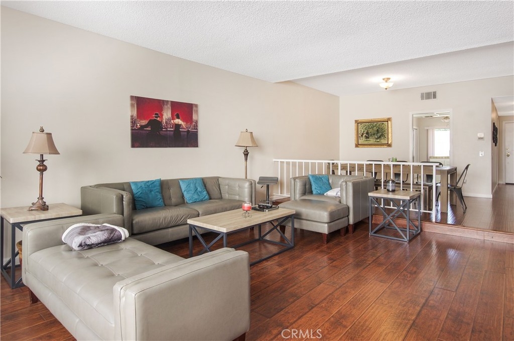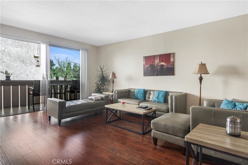 Stunning 2 bedroom 2 bath end unit condo with high ceilings located in a quiet community. This spacious, bright and open 1-story unit has over 1500 sq ft., away from the street and sharing only one wall all redone with hardwood flooring & updated kitchen with newer appliances. Formal dining area and large living room, large master suite with a huge walk-in closet and private bath with a separate shower & spa tub as well as his/her sinks. 2nd bedroom is also master style and very private. Breakfast area and indoor laundry. Great complex with secured access, gated private parking (2 tandem spaces) along with pool & spa. Centrally located to all shops, restaurants, entertainment and CSUN.