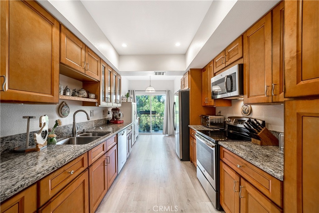 BEAUTIFUL high-end condo in the heart of the VALLEY!! MOVE-IN READY! This turn-key home welcomes you with an ambiance of natural light! With high vault ceilings located in a quiet community, this large 1-story unit with over 1400 sq ft. features stainless steel fixtures and appliances, two LARGE bedrooms, two full bathrooms. Large master bedroom features a walk-in closet with an en-suite bathroom! Open kitchen with stainless steel appliances, granite counter tops and brand-new flooring. Dual pane windows, Central A/C and heat, recessed lighting, and a built-in fireplace in the living room to enjoy those warm evening nights! Wonderful picturesque views of the mountains, trees, and an AMAZING sunset view off the living room balcony! Breakfast area in kitchen, indoor laundry hook ups, secured access, gated underground parking, a storage locker, along with a stunning pool & spa! Centrally located in San Fernando Valley and in walking distance to Northridge Fashion Center Mall, shops, CSUN, many restaurants and entertainment. This is a must see and won't last long!! Bring your family and welcome home!
