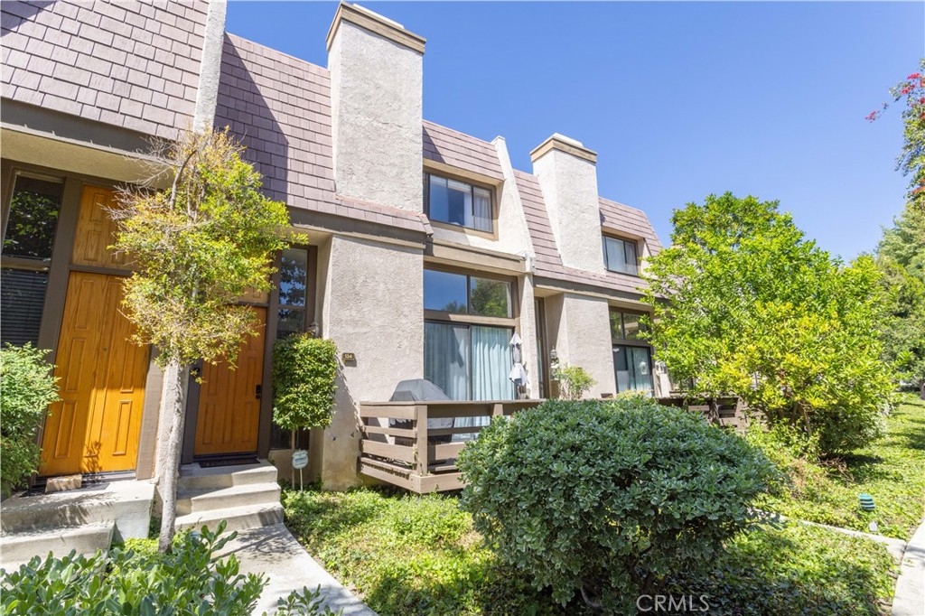 Welcome to this gorgeous tri-level townhome in the highly desirable private community of Northbrook. Open and spacious floor plan with 2 bedrooms and 2.5 bathrooms with its trademarked high ceilings. The living room has a distinct touch with floor-to-ceiling windows, stone fireplace, recessed lighting, laminate flooring and lush views. This bright and airy unit is filled with natural light and has an exterior patio that opens up to the east greenbelt of the community. The second floor is an entertainer's dream with the beautifully remodeled kitchen with ample cabinetry, Quartz countertops, tiled backsplash, farm sink, stainless appliances, upgraded wet bar, and plenty of seating in the formal dining space for all of your family and guests. Adjacent powder room for guests. Upstairs the spacious master bedroom features recessed lighting, ceiling fan, large walk-in closet, and has its own remodeled bathroom with double vanity and marble countertop, newer tiled shower & flooring, and decorative wall sconces. The second spacious bedroom also offers its own private bathroom. Large two-car attached garage with direct access, laundry hook-ups, custom cabinets, painted epoxy flooring, and an outlet for charging an electric vehicle. Additional features include newly upgraded electrical panel, carbonized bamboo flooring on first and second floor, newer carpet on third level, new window blinds throughout, and Smart WIFI light switches in most rooms. This community boasts beautiful grounds, peace and serenity with waterfalls, streams, 3 spas, large pool, tennis courts and conveniently located within walking distance to main shopping area, restaurants, public transportation & CSUN! HOA includes Earthquake insurance, water, sewer, and 24-hour security patrol. Don't miss out on this one!