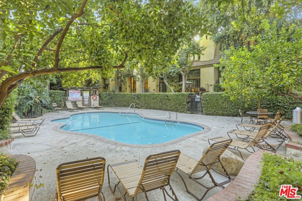 Spacious 3 bed, 2.5 bath tranquil end unit possessing the best floor plan at Northridge's resort-like community Northbrooke. Contemporary design meets modern style, with the feeling of a home, only 1 shared wall, and louvered shutters throughout the main floor. The double-height living room boasts natural light, a cozy fireplace, and a redone private patio, perfect for barbeques, entertaining, and surrounded by lush greenery. Pristine laminate floors continue from the living room to the split-level dining room and bonus area, perfect as a home office. Ample kitchen cabinets and a wet bar complete the kitchen space. Upstairs, the primary bedroom is its own suite, with a large walk-in closet and bathroom. 2 well-sized bedrooms flank the opposite end of the floor. The townhome has been freshly painted. HOA includes exterior & earthquake insurance, water & sewer, 3 spas, a large swimming pool, 2 tennis courts. Incredible proximity to CSUN, the Fashion Center, Costco, and the 118 freeway.