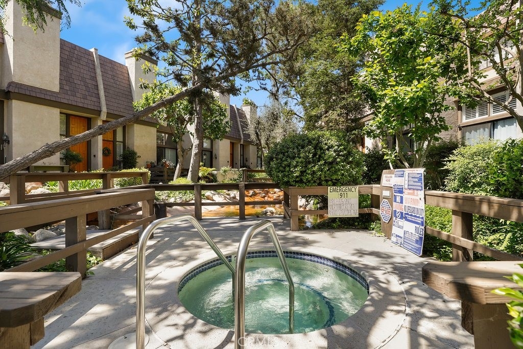 Welcome home to this ready to move in beautiful Townhome in the highly desireable Northbrook community. One of the best locations of the complex , this is an end unit inside location. Large 3 Bedrooms and 2.5 Bathrooms with 1576 Sq Ft.Open floor plan is very bright and leads to a living room with high ceilings,fireplace, scraped ceilings and sliding door leading to a large patio deck with views of plush greanery, stream and near the pool /spa. Remodeled kitchen with new quartz countertops and tiled backsplash. Recessed lighting. Wet bar . Newer A/C unit. Half bathroom on second floor. All bedrooms upstairs are spacious with lots of closets space. Main bedroom has own bathroom and walk-in closet. Ceiling fans in bedrooms. Two car attached garage with laundry inside and work bench. This is a beautiful complex with pool, spas, tennis court and green lushes! Truly an all around resort feel !! A must see !!