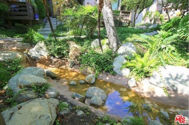 Large, 3 story, 2 bedroom, 2.5 bath, 1,458 sq ft townhome located minutes from Northridge Fashion Center, restaurants and Cal State University Northridge! This home features 15' vaulted ceilings, neutral paint, spacious kitchen with plenty of storage space, and wood/gas fireplace. Porch overlooking heated pool, spa, and stream all just steps away from the front door. 2 car garage with washer and dryer hookups and built-in storage. Townhouse oasis surrounded by lemon and avocado trees. Community tennis courts and plenty of guest parking all on a quiet street!