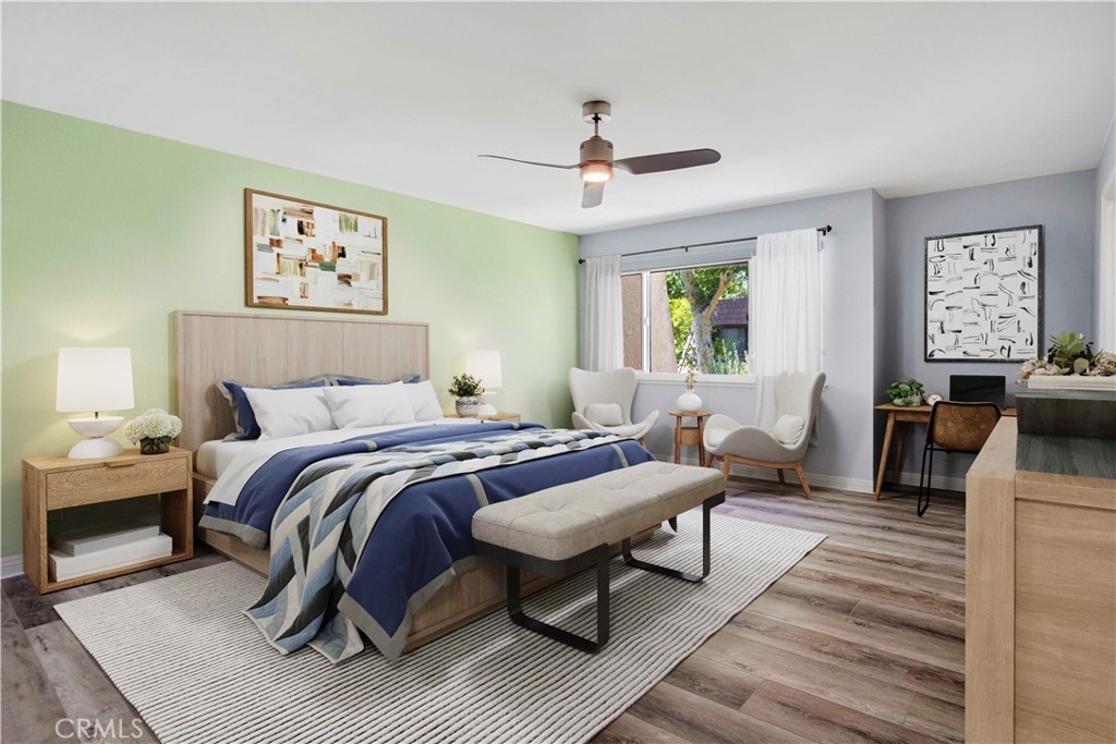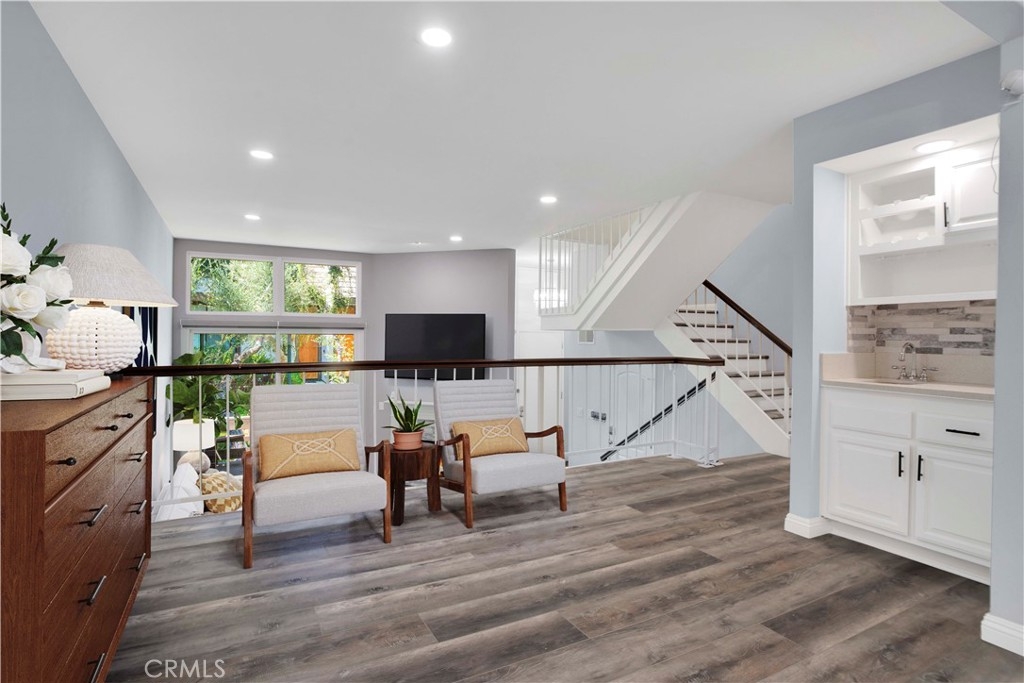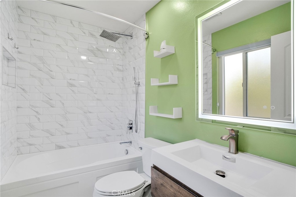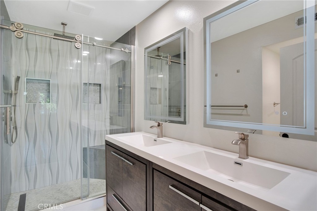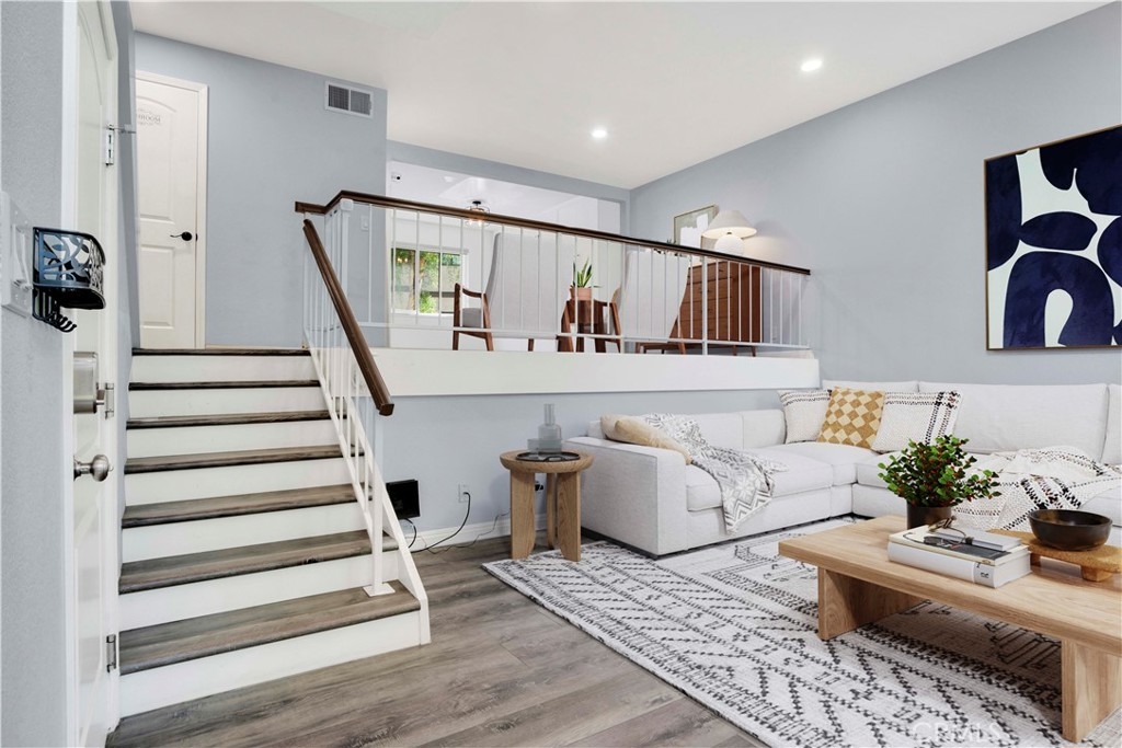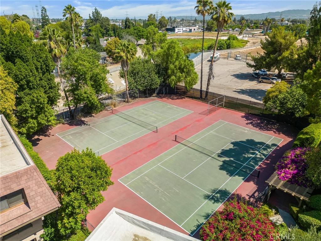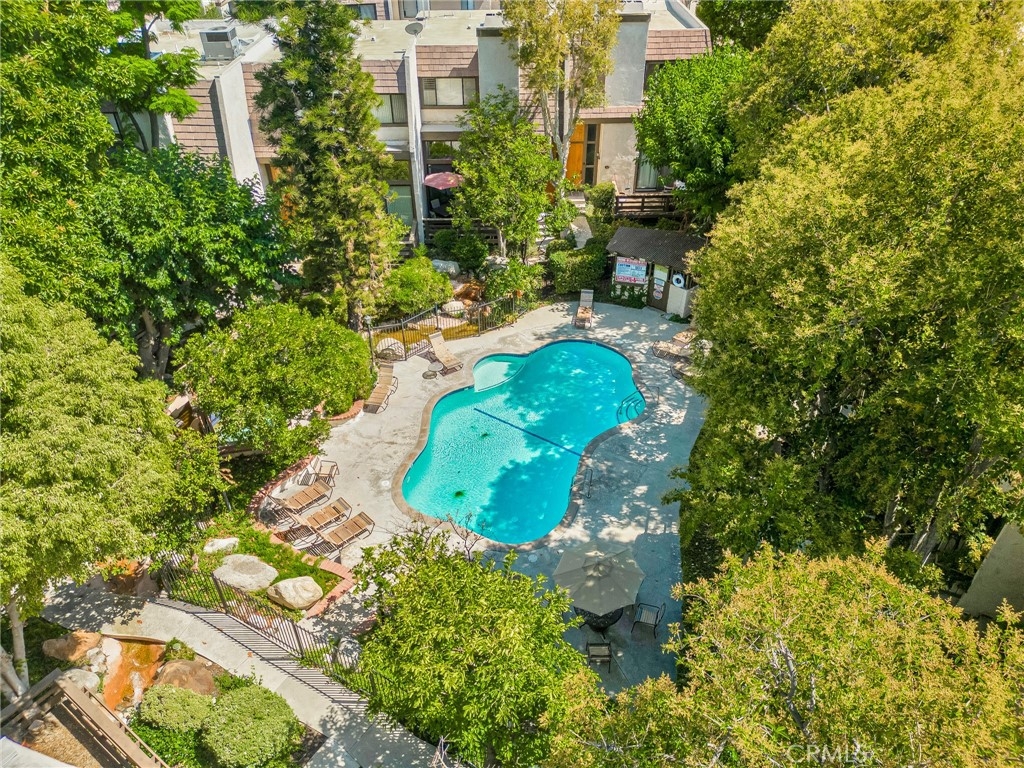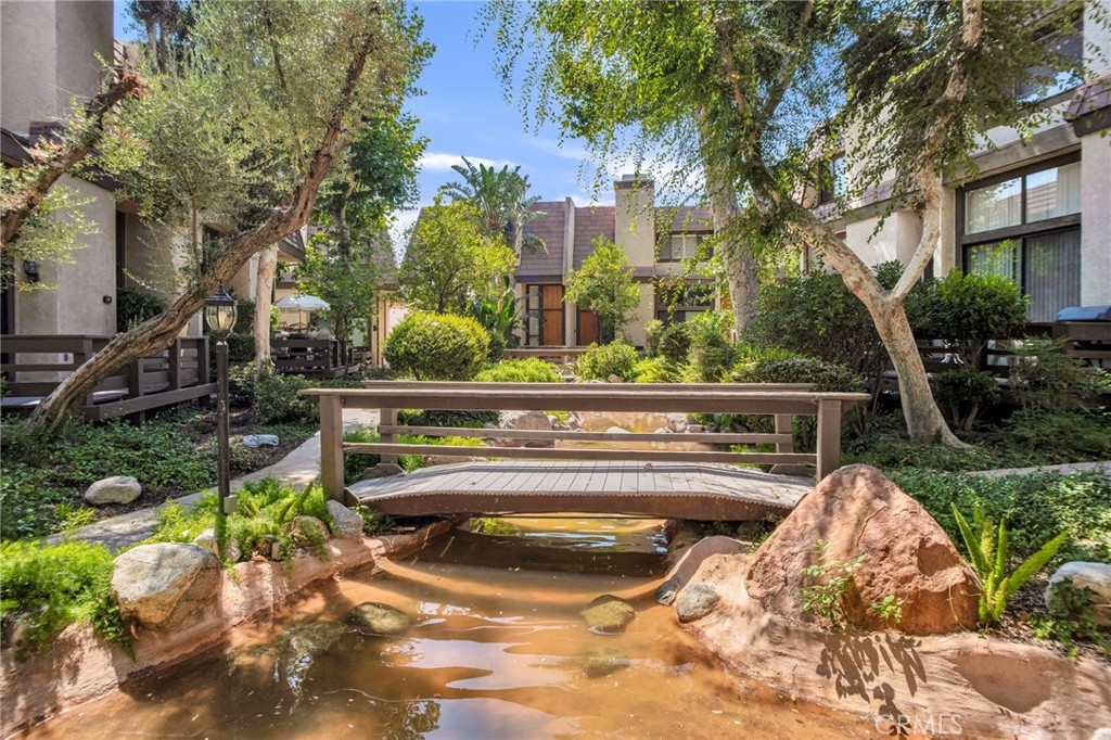 IMPROVED PRICE!! LOCATION, LOCATION LOCATION! Welcome to this gorgeously remodeled Northbrooke townhome! The unit boasts 2 large suites, 3 baths, private 2 car garage, and is tucked deep within the complex, entering through the treelined walkways, alongside the flowing water feature. This light & bright tri-level home has an open floorplan with vaulted ceilings & clerestory windows that bring in natural light throughout the day. Stylish combinations of modern elegance from the chic chandelier in the 2 story entry; to the sleek stainless steel appliances, quartz countertops & marble subway backsplash in the kitchen; with classic backdrops of paint color throughout the home to compliment any design. Modern features include: smooth ceilings, recessed lighting, custom zebra blinds & luxury vinyl plank flooring throughout. Upgrades include: brand new dual pane windows & whole-house water filtration system. The spacious lower level living room has a corner fireplace with stone tile & wood mantle. Enjoy coffee, drinks or entertaining on the lush patio-- which sits above the green space path & shaded by surrounding trees. The upper living-dining room & kitchen level has a built in coffee/bar with sink & additional built-ins in the dining area offer abundant storage options. This flex space level is large enough to have an extra sitting area, which makes it great for entertaining. The huge primary suite has a treetop view, accent wall, desk niche, modern ceiling fan/light, an extra large closet & a secondary closet. The spa-inspired primary ensuite features dual vanities, glass enclosed rainfall shower & handheld fixtures, high end tile finishes with corner bench seat, & brushed nickel hardware. The guest suite has large closet & a full size ensuite. This secondary bath features classic subway tile surround, waterfall & handheld fixtures, modern vanity & lighting with brushed nickel hardware. Enjoy resort-style amenities, including a sparkling pool, garden jacuzzi, tennis courts, meandering water features, guest parking. Northbrook's HOA covers 24 hour Security, water, sewer, earthquake insurance; other mentionable items: earthquake retrofit done in 2020 & a new roof done in 2023. Located in the heart of Northridge-- easy freeway access for commuters; minutes from Porter Ranch, CSUN, Northridge Fashion Center, Porto's Bakery, Costco & MORE! Great opportunity to own this townhome; it feels more like a home in a nice neighborhood-like community.