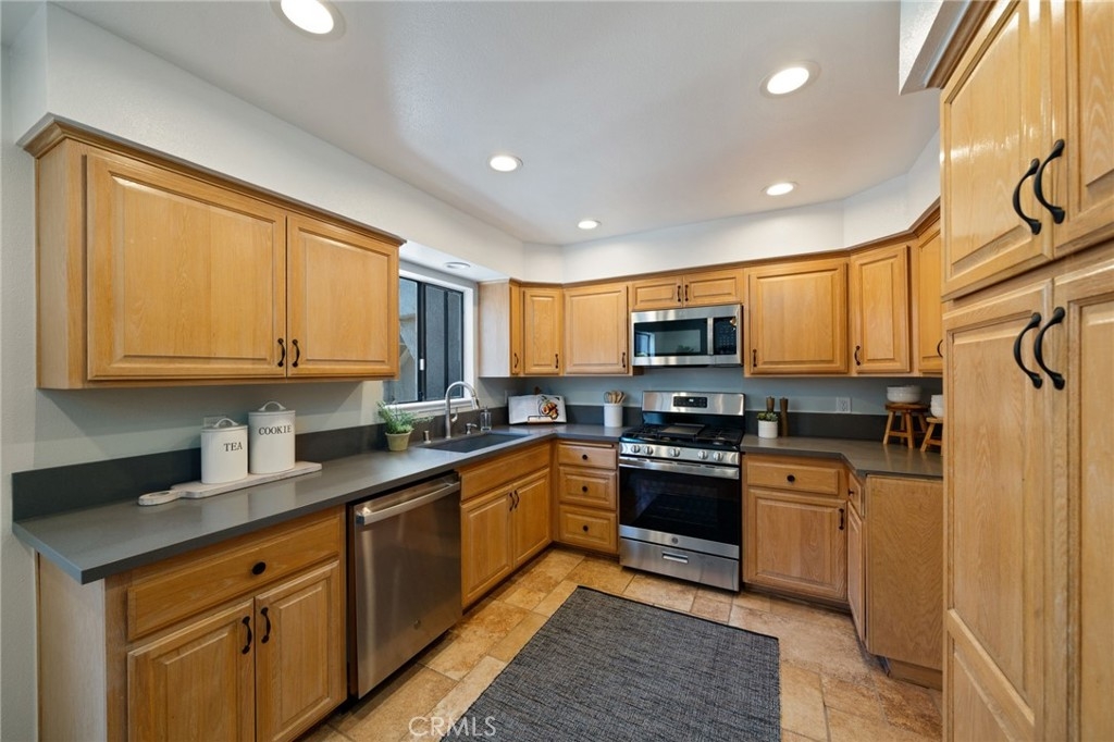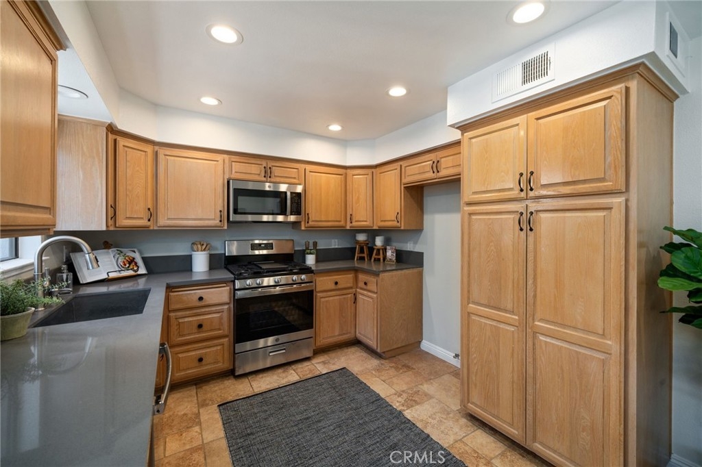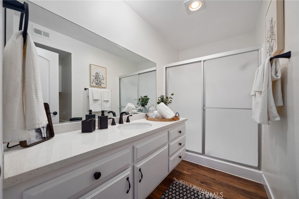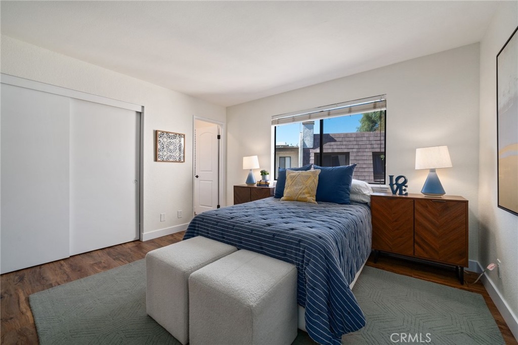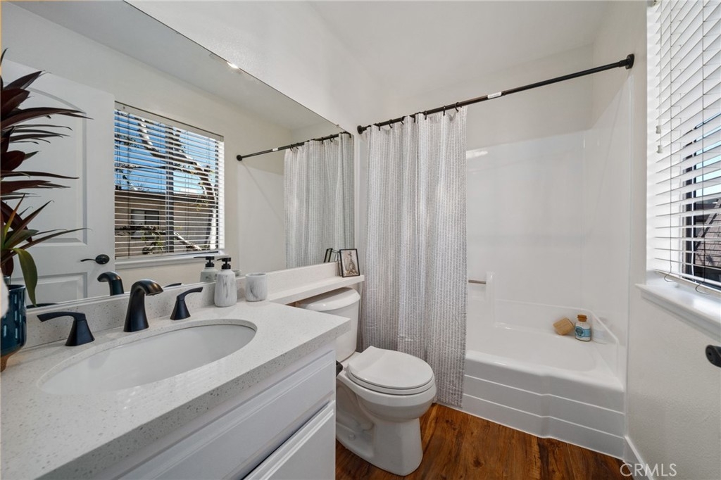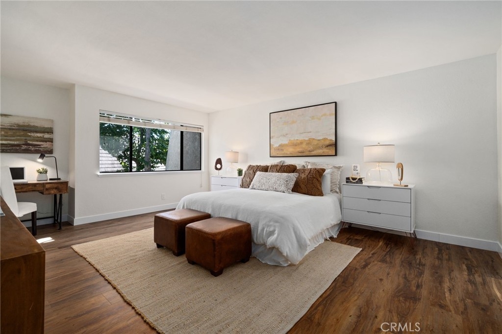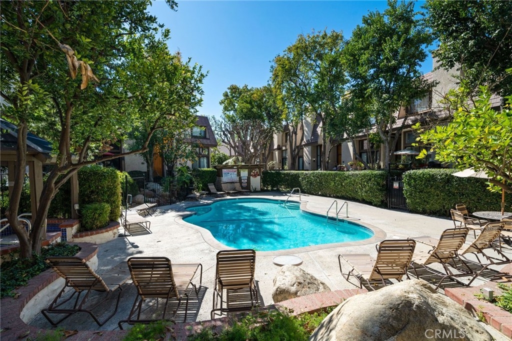 Discover this stunningly renovated two-bedroom, three-bathroom townhouse in the lush, highly sought-after Northbrooke community. This home boasts modern upgrades, including quartz countertops, fresh paint, new flooring, new appliances, stylish fixtures, and recessed lighting. Filled with abundant natural light, the spacious layout features an inviting living area with a cozy gas fireplace, seamlessly flowing into the dining space, wet bar, half bath, and kitchen. Upstairs, both bedrooms offer privacy with en-suite bathrooms. Enjoy the convenience of in-unit laundry, central AC and heating, and a private outdoor balcony. The beautifully maintained grounds, cared for by the HOA, include a pool, spa, and tennis courts, enhancing the serene atmosphere of this wonderful neighborhood. The complex underwent extensive earthquake retrofitting, completed in 2022. HOA dues cover earthquake insurance, sewer, water, and 24-hour security patrol. Ideally located with easy access to shopping, Northridge Mall, hospitals, restaurants, public transportation, and CSUN, this home offers both comfort and convenience. Welcome Home!