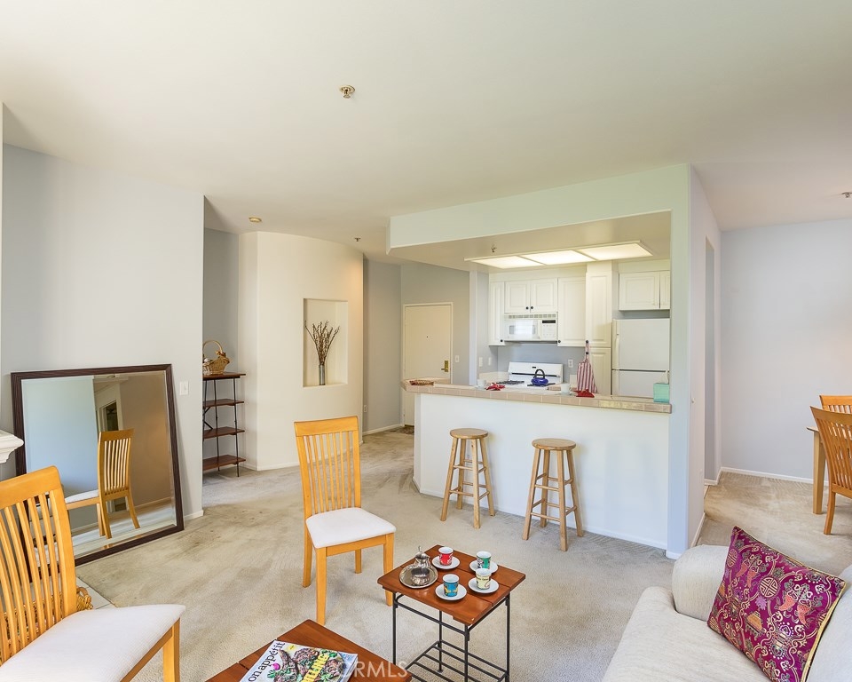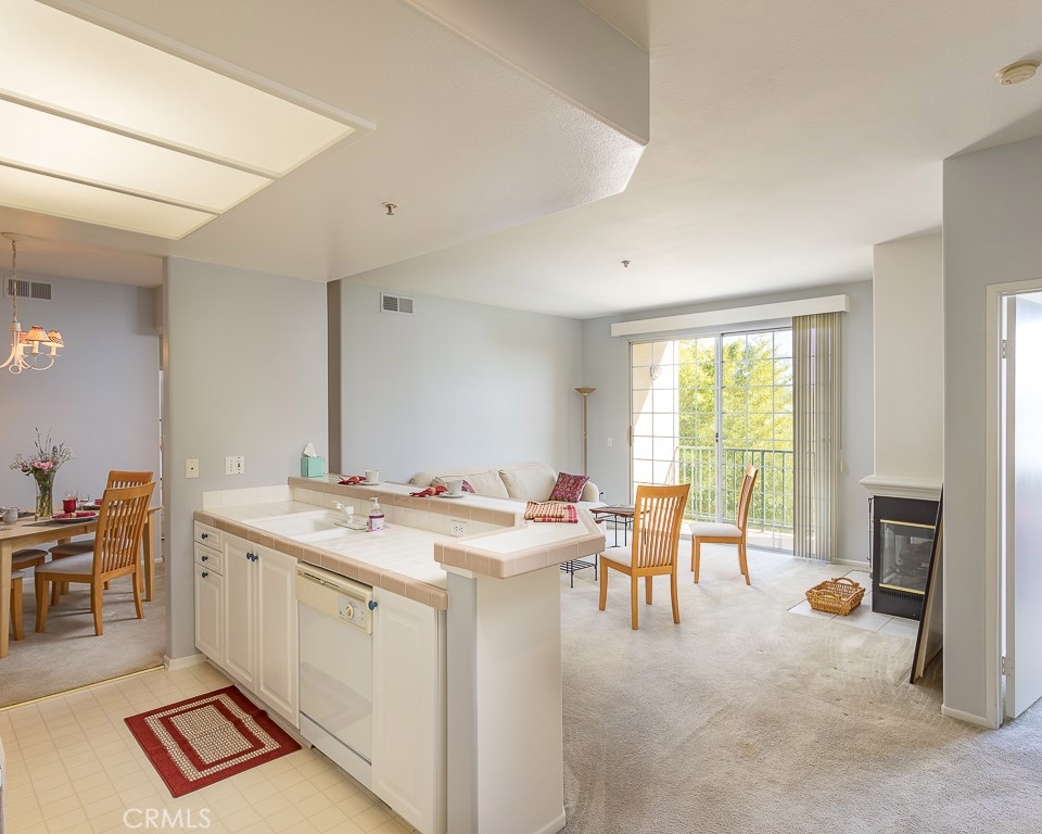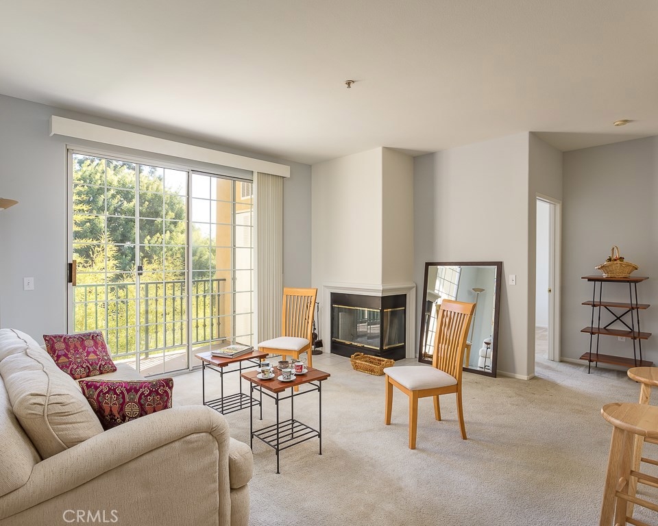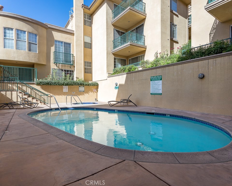 WALKING DISTANCE TO CSUN! Great Investment Rental Property, or well-maintained unit ready to move-in. Freshly painted one-story unit with 2 bedrooms and 2 bathrooms. Architectural niches in 2-tone paint welcomes you as you come in, with east-facing Living Room located on the side of the building overlooking lush landscaping from a lovely private balcony, with unobstructed views by another building and lots of skyline. Located on the third floor (top floor with no one above) accessed by elevator very close to unit. Gated and accessed through security gate, and gated underground parking with 2-tandem parking spaces (#23), building of 45-units enjoys Community Pool, Spa, Fitness Center, and guest parking spaces. Full kitchen includes: refrigerator, built-in microwave, dishwasher, stove, oven and is open to living room with breakfast bar. Spacious Dining room with built-in bar. Living Room has cozy corner clean-burning natural gas fireplace, powered with a switch on the wall. Each bedroom is on opposite sides for added privacy, and the large master bedroom has an en suite spacious master bathroom with tub and shower, and a large walk-in closet. Master bedroom does not share any walls with neighbors. Second bedroom to the left of living room has hall bathroom with shower and tub, and laundry closet with stacked washer and dyer (which is included). HOA includes: landscaping of lush grounds, water and earthquake insurance. Entertainment, dining, parks are all nearby.
