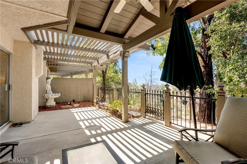 Most magnificent Canyon View Unit in Park Northridge. This 3 bedroom, 3 bathroom, light, bright and open, 1607 square foot, Traditional Townhome is sited in the sought after Park Northridge. With views of Hole 3 of the Porter ridge Golf Course, the home features a private Gated Courtyard entry, a huge enclosed rear patio with a Chalet Style Pergola Roof and Ceiling Fan. Built-in Glass Cabinetry in the kitchen with an imported antique designed Oven/Range with Bun Warmer, Trash Compactor and Breakfast Bar. Eat in the inviting Dining Room with its large Bay Window, and lounge in the spacious Living Room featuring a fireplace with a custom mantel. Master with Bay Window and Custom Walk-in Closet. 3rd Bedroom with Custom Built-ins Including office desk, drawers, glass cabinets, along with built-in Murphy style bed. Bonus room potential for a 4th bedroom. The garage fits 2 large cars, and is attached with Direct Access and additional storage. HOA pays Fire and Earthquake insurance, Sewer and Water. An extraordinary townhome in a great location.