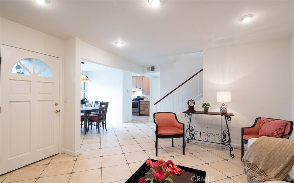Desirable Peppertree Northridge complex, end unit, 2 story townhouse of 3 bdrms, 2.5 bths. Recently refreshed, painted throughout, smooth ceilings, recessed lights, new laminate upstairs. New HVAC. 1st level is an open living room space with tiled floors, kitchen is bright with plenty of storage space looking out the spacious patio. Formal dining area is large, perfect for gatherings, with sliding door that opens to the front landscaped patio which adds to the charm of the indoor-outdoor entertainment space. The downstairs half bath is large and houses side by side laundry & built in cabinetry. All bedrooms are on the 2nd level. A large master suite with new wall to wall closet, sliding door to a large balcony, a master bath with new vanity & lights, large walk in shower. Hallway full bathroom is large, beautifully & tastefully updated top to bottom is shared by the other 2 spacious bdrms with large windows to allow natural light, one has a new closet, the other a small walk in closet. Unit has 2 carport spaces, one is covered in front of the unit. Well maintained complex is close to CSUN, transportation, shopping & entertainment. Amenities include: large pool & spa & 2 tennis courts, manicured grounds. Great for an active lifestyle, not to be missed!
