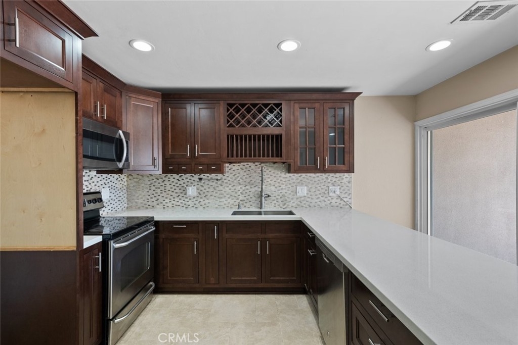 This exquisite townhome boasts 4 bedrooms, 3 bathrooms, and 1,379 square feet of living space. Nestled within a vibrant community, it offers an array of amenities including a refreshing pool and two tennis courts, along with the convenience of 2 carport parking spots—one covered and one uncovered. Discover a spacious family room illuminated by recessed lighting, seamlessly connected to the kitchen. The kitchen impresses with its generous size, adorned with a stylish tile backsplash, granite countertops, and ample storage options. Equipped with modern appliances including electric stove & oven, microwave, and dishwasher, it's a chef's delight. The downstairs bathroom features a convenient ¾ layout with a walk-in shower and laundry hookups tucked away in a closet. Each bedroom exudes comfort and style, offering abundant natural light and ample closet space. The primary bedroom enjoys access to a private balcony, perfect for relaxation. Upstairs, you'll find two bathrooms catering to convenience and luxury. One features a ¾ layout with a walk-in shower and granite countertop sink, while the other presents a full bathroom complete with a detachable shower head and ample counter space. Nestled in a highly coveted residential area, this townhome is ideally located just minutes away from CSUN and falls within the esteemed Nobel, Topeka, and Granada Hills Charter school district, making it a dream home for those seeking both comfort and convenience. The two assigned parking spots are both numbered 115.
