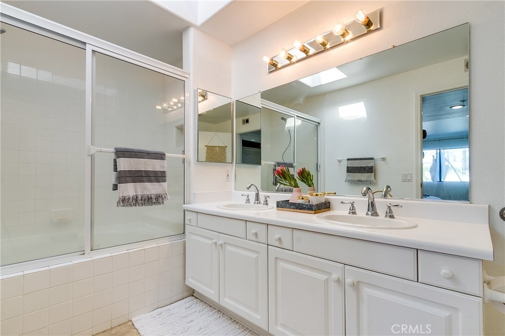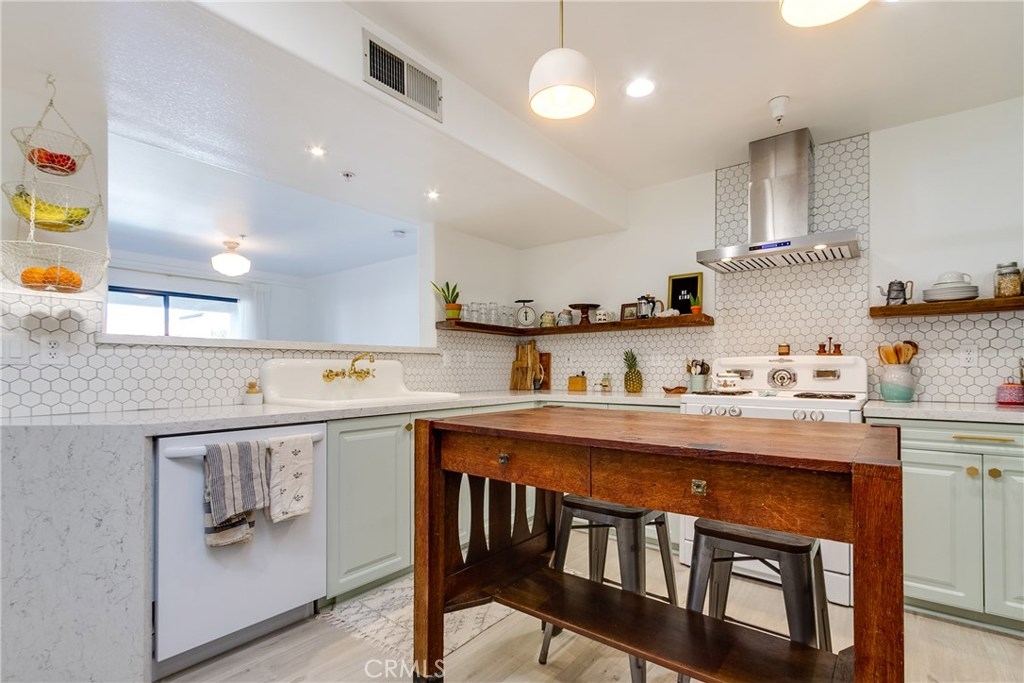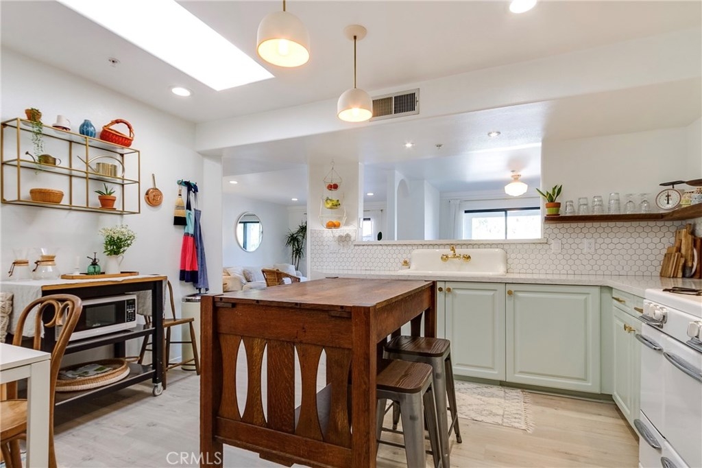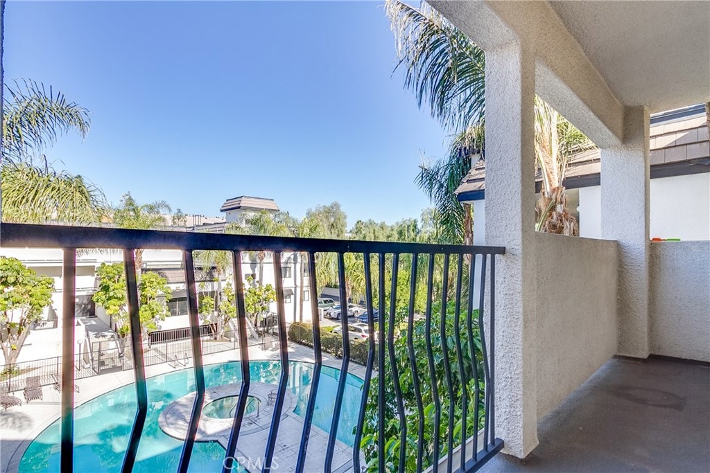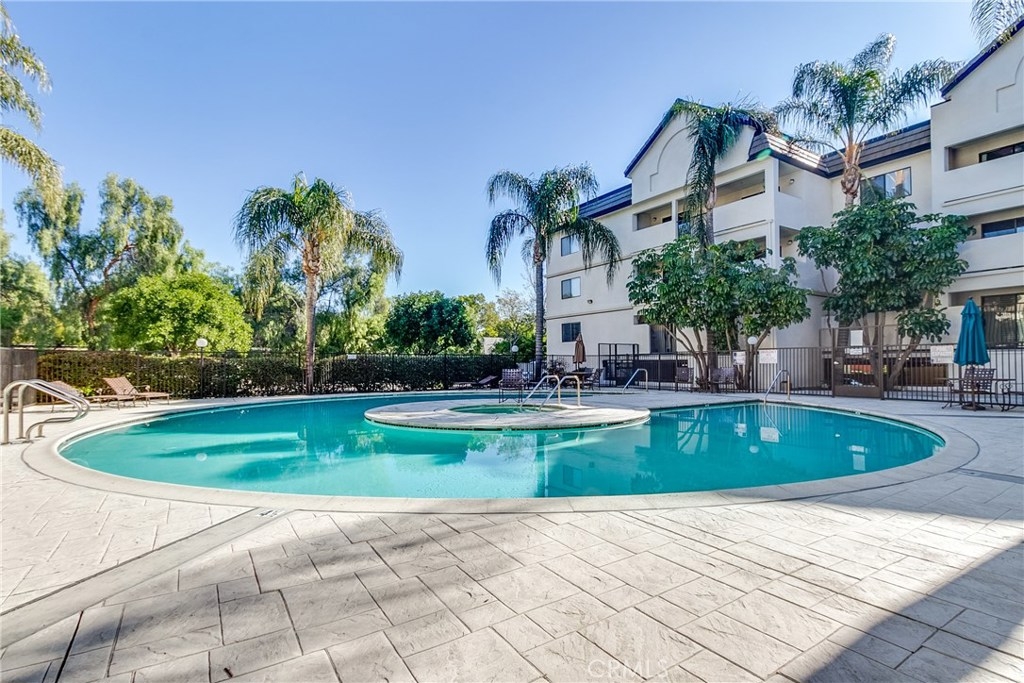 Don't let this opportunity pass you by! This spacious top floor 2 bedroom, 2 bathroom condo in Northridge has recently been tastefully remodeled and upgraded with all new flooring and recessed lighting throughout the unit. The completely remodeled kitchen features a skylight, wall mount farmhouse sink, quartz counters and open wood shelves. It also includes a rare restored O'Keefe and Merritt stove, custom tile backsplash, pendant lights from Cedar & Moss and newly painted cabinets along with a new range hood, fridge, brand new dishwasher and ample space for a center island and breakfast nook. Both bedrooms have walk-in closets and both bathrooms each have a skylight, with the master featuring double sinks. There is a dedicated laundry area with washer and dryer in the unit and central AC. The home only has one shared wall and offers a modern, inviting and open feel throughout with nice views of the courtyard and pool area from the balcony. Amenities in the complex include a pool, spa, gym, sauna, meeting/rec room, same floor storage unit with easy access, 2 assigned garage parking spaces, ample private gated guest parking and pet walking area. The home is conveniently located in a great neighborhood close to CSUN, top schools, dining and shopping. This is a rare one so don't miss out and schedule your showing today!