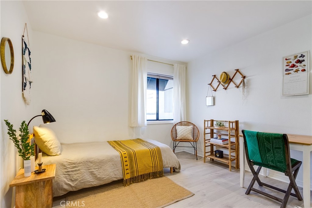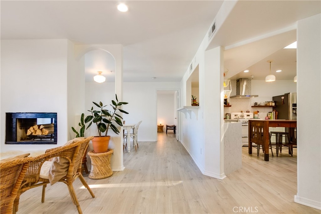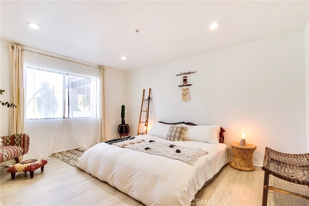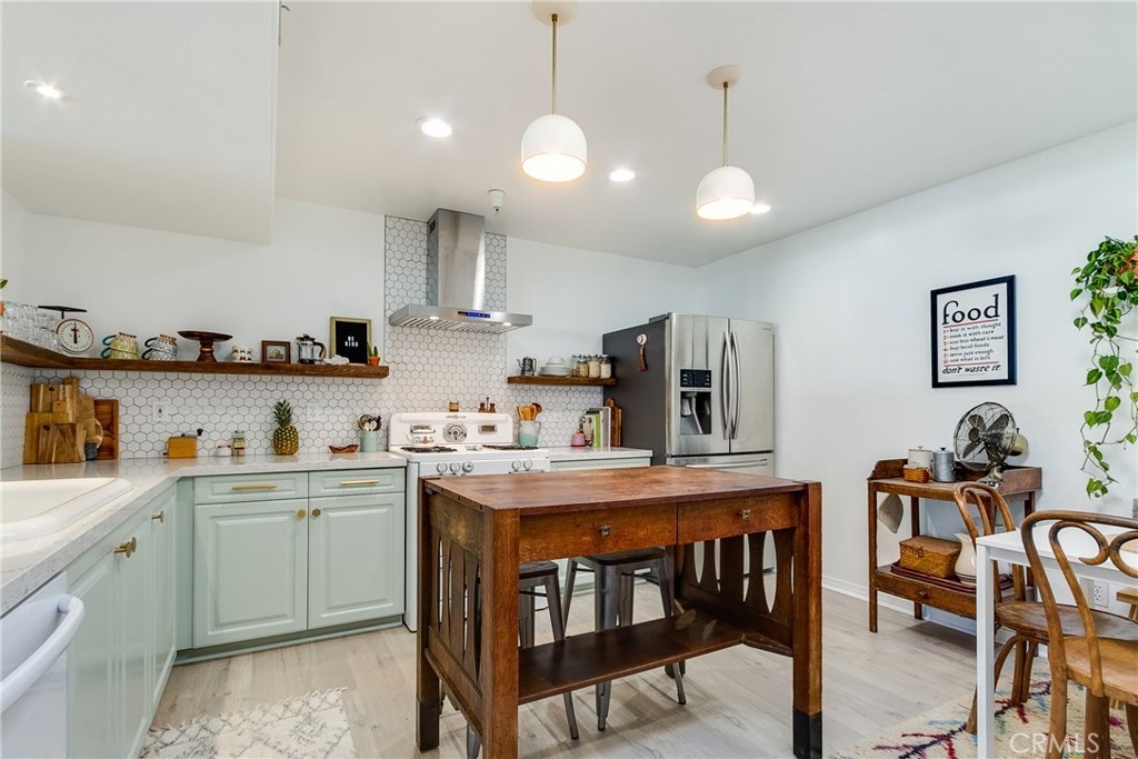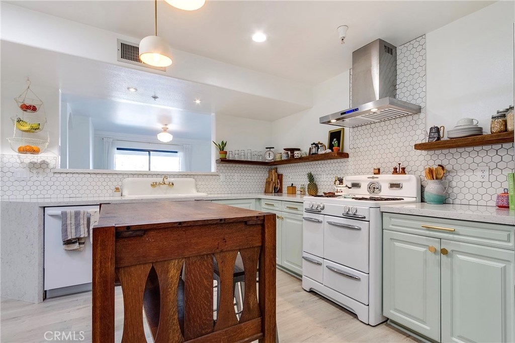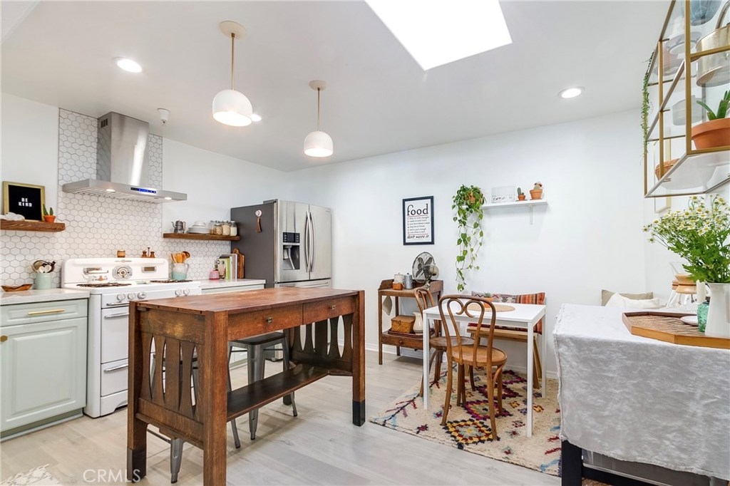 Don't let this opportunity pass you by! This spacious top floor 2 bedroom, 2 bathroom condo in Northridge has recently been tastefully remodeled and upgraded with all new flooring and recessed lighting throughout the unit. The completely remodeled kitchen features a skylight, wall mount farmhouse sink, quartz counters and open wood shelves. It also includes a rare restored O'Keefe and Merritt stove, custom tile backsplash, pendant lights from Cedar & Moss and newly painted cabinets along with a new range hood, fridge, brand new dishwasher and ample space for a center island and breakfast nook. Both bedrooms have walk-in closets and both bathrooms each have a skylight, with the master featuring double sinks. There is a dedicated laundry area with washer and dryer in the unit and central AC. The home only has one shared wall and offers a modern, inviting and open feel throughout with nice views of the courtyard and pool area from the balcony. Amenities in the complex include a pool, spa, gym, sauna, meeting/rec room, same floor storage unit with easy access, 2 assigned garage parking spaces, ample private gated guest parking and pet walking area. The home is conveniently located in a great neighborhood close to CSUN, top schools, dining and shopping. This is a rare one so don't miss out and schedule your showing today!