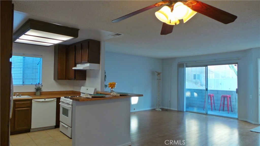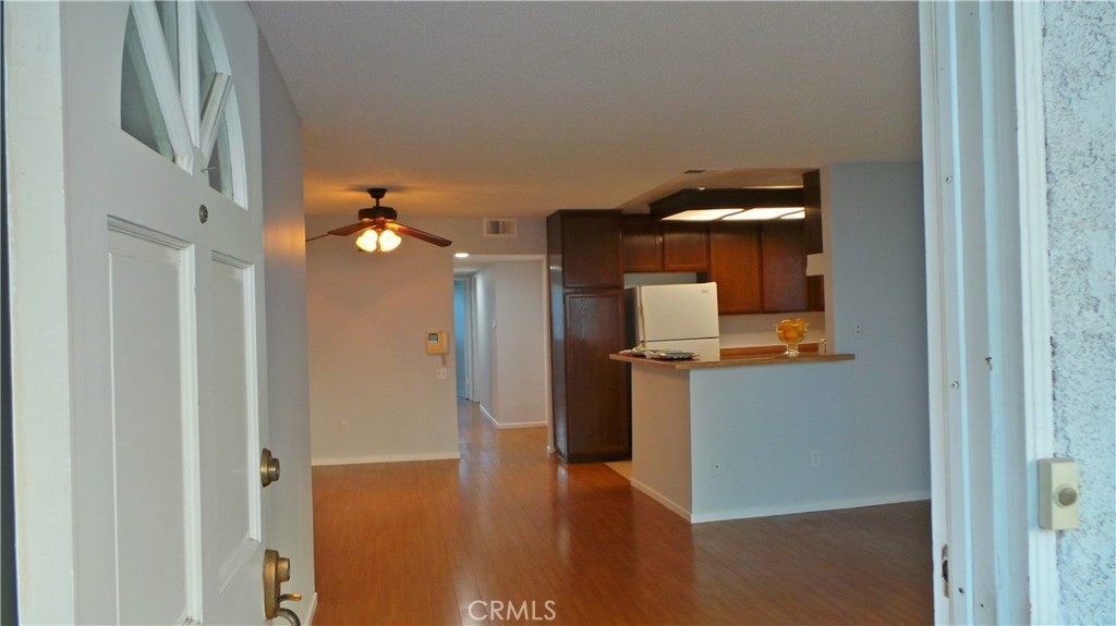 Location is everything and this complex has it all…being situated one block from CSUN & near shopping, restaurants & public transportation! This attractively priced 2 bedroom 2 bath coveted downstairs end unit with apx 1044 sqft of space features new interior paint, laminate flooring in main areas and new carpeting in the bedrooms. Large living room with slider door to its own large concrete patio, dining area with ceiling fan with lights, kitchen with breakfast bar, refrigerator, 4 burner gas range, & oven with broiler drawer, new exhaust hood, dishwasher, pantry closet & plenty of counter space. The master suite with its own attached bathroom has a large walk in closet, newer dual sink vanity & privacy room with shower & toilet. The bathroom off the hall which has an upgraded vanity & tub/shower combo serves as a guest bathroom and is near the second bedroom. The indoor laundry room has plenty of shelves & a storage cabinet. The HOA dues provide for a common area pool and spa and includes EQ insurance, trash, water & landscaping. The underground security parking garage has plenty of elevator access and guest parking spaces. This unit comes with a double tandem parking space #55. Clean and ready to move in.