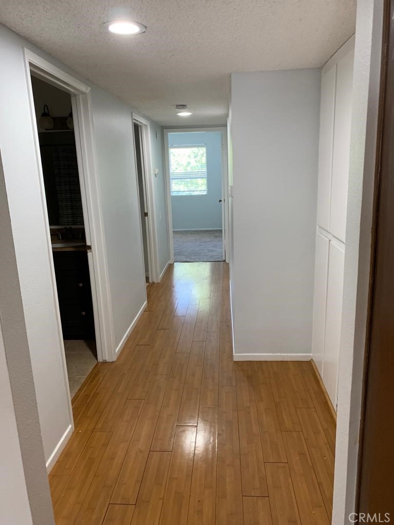 Charming two bedroom and two bath main-level, end unit condo is located in a prime area of Northridge, one block from CSUN. Offering a spacious Kitchen with a breakfast counter, pantry closet and plenty of counter space. Enjoy the dining area open to the spacious living room with direct access to a private patio. Primary bedroom suite with an entry closet. Newer blinds and Laminate flooring throughout. Indoor side by side laundry closet with plenty of shelves and a storage cabinet. Tandem subterranean secured parking with elevator access to the main level. Beautiful courtyard with a sparkling pool and spa. Conveniently located near a variety of restaurants, shopping, public transportation and so much more.