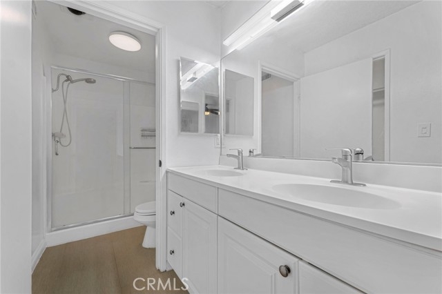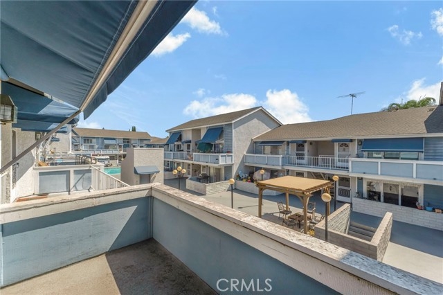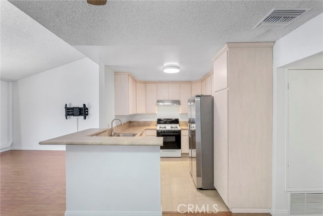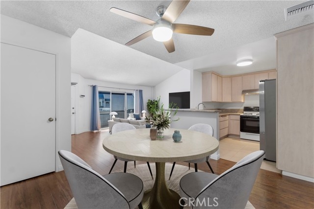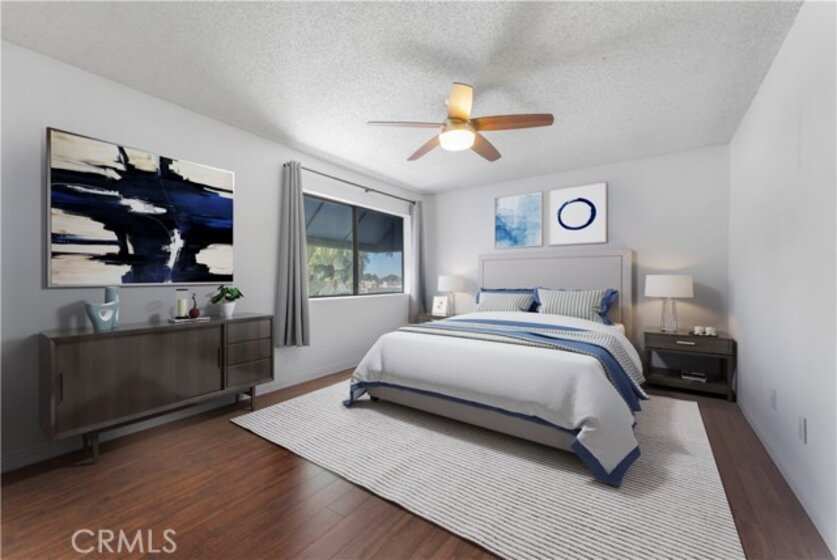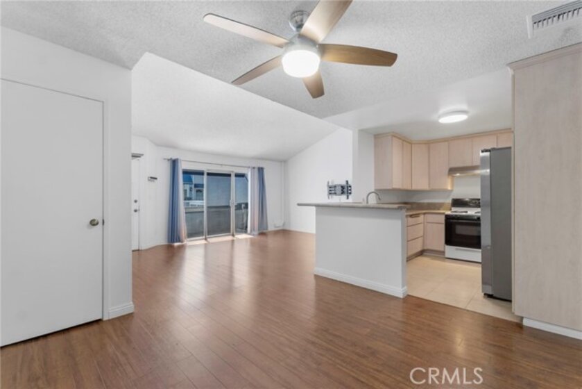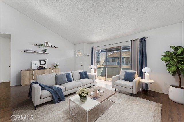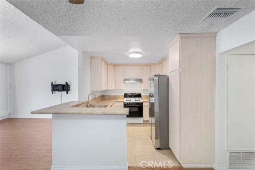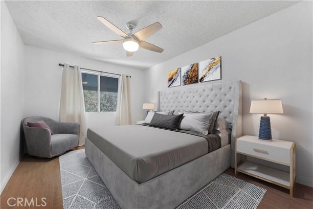 Charming two bedroom , two bath upper level condo located in a prime area of Northridge, one block from CSUN. Offering a spacious Kitchen with a breakfast counter and plenty of counter space. Enjoy the dining area open to the spacious vaulted ceiling living room with direct access to a private patio. Primary bedroom suite with walk in closet. Second bedroom has mirrored closet doors. Both bedrooms have ceiling fans, Laminate flooring throughout. Indoor side by side laundry closet with plenty of cabinet space. Tandem subterranean secured parking with elevator access to the main level. Beautiful courtyard with a sparkling pool and spa. HOA covers earthquake insurance, water and trash. Conveniently located near a variety of restaurants, shopping, public transportation and so much more. This one will go fast!