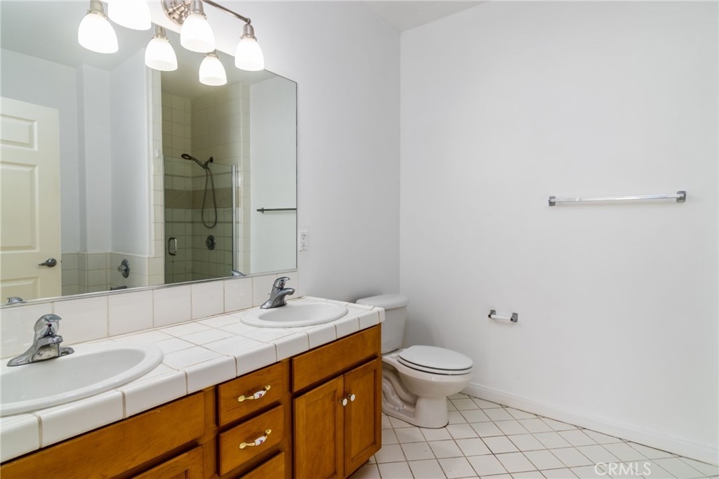Fantastic Northridge location across the street from CSUN campus and in the coveted Granada Hills High School boundaries! This double master condo sits at the back corner of the complex on the top floor away from the street. New paint and carpet throughout. Enter into a large living area with sliding glass door to the balcony. Dining area sits off the kitchen complete with breakfast bar, granite counters, gas range/oven, new stainless microwave, dishwasher and dual basin sink. Stackable washer & dryer in unit. Master bedroom situated at the front of the unit boasts a large walk-in closet, en-suite bathroom with dual sink vanity, separate tub and shower. The secondary master at the back of the unit also has a large walk-in closet and en-suite bathroom with tub/shower, new vinyl flooring and new toilet. New HVAC system installed in 2019. Community features include convenient trash chute on each floor, a lounge/lobby area with seating, an outdoor patio on the main level with patio tables, chairs and umbrellas, sparkling pool and secure building access. Key fobs used for entry and residents use a key to access the elevator from the garage level. 2 tandem assigned parking spaces close to the elevator and guest parking available. Close to shops, restaurants and the 118 freeway.