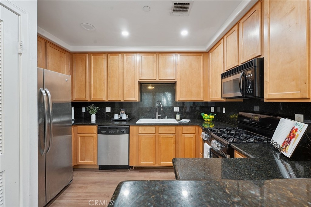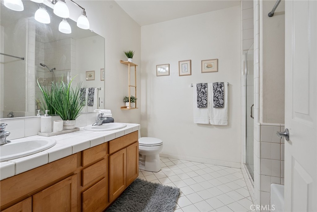 Ideal Northridge location just across from CSUN and Northridge Academy High School. Terrace court is a lovely building with community pool, fitness center, BBQ area, courtyard with dining tables and a secured lobby. This unit is MOVE IN READY with NEW Luxury Vinyl Flooring throughout, NEW paint, Updated bathroom, Recessed lighting, in unit washer/dryer. This floorplan is an investors dream with 2 suites with attached bathroom and extra large walk-in closets. Primary suite features a walk in shower, separate tub and double sink vanity. Kitchen was updated with wood cabinetry to the ceiling, tons of extra storage, granite counters and a granite backsplash. This unit in conveniently located on the first floor and is light and bright with tons of windows, a sliding door to the front patio and a back patio off primary suite. At nearly 1200 square feet this unit is highly desirable and will go fast. Located near shopping, schools, freeway, restaurants, Northridge Fashion Center.