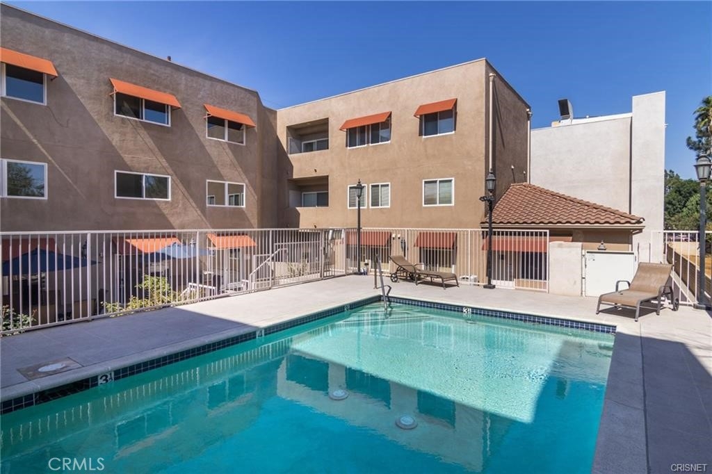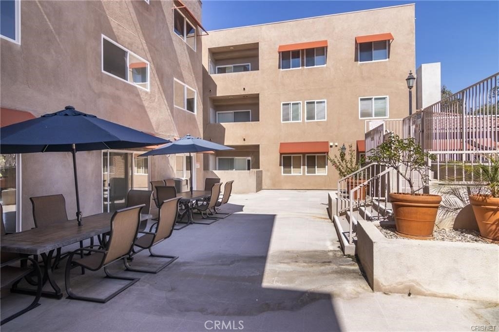 END UNIT Has only one common wall, the best location within this building, Views on both bedrooms and balcony. The building was Built in 2004, Fantastic Northridge location across the street from the CSUN campus and close to award-winning Granada Hills High Charter School boundaries! This double master condo sits at the inner side of the complex on the top floor only one common wall connects to another unit which is very quiet. Enter into a large living area with a sliding glass door to the balcony. The dining area sits off the kitchen complete with breakfast bar, granite counters, gas range/oven, new stainless microwave, dishwasher, and dual basin sink. Whole unit with newer laminate wood flooring and upgraded tiles on kitchen and bathrooms. New Refrigerator and Stackable washer & dryer in unit. The Master bedroom situated at the right side of the unit boasts a large walk-in closet, en-suite bathroom with a dual sink vanity, separate tub and shower. The secondary master at the left side of the unit also has a large walk-in closet and en-suite bathroom with tub/shower. Community features include a convenient trash chute on each floor, a lounge/lobby area with seating, an outdoor patio on the main level with patio tables, chairs, and umbrellas, a sparkling pool, and secure building access. Key fobs are used for entry and residents use a key to access the elevator from the garage level. 2 tandem assigned parking spaces and guest parking available. Close to shops, restaurants and the 118 freeway.