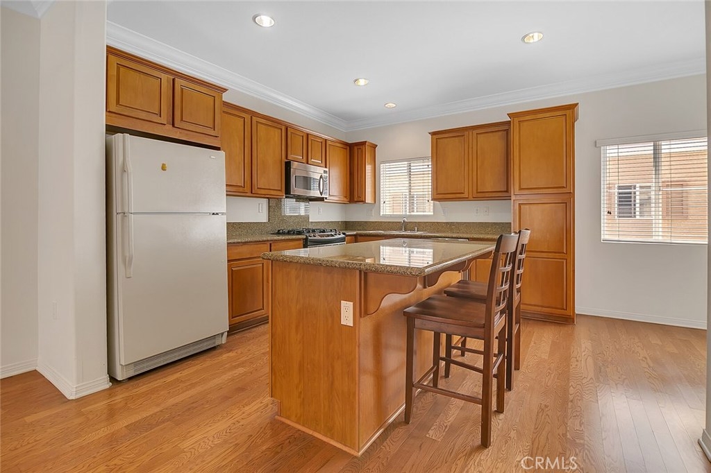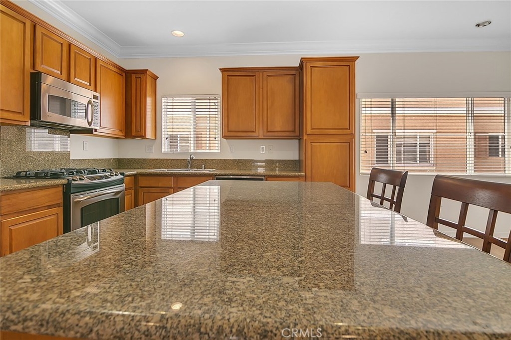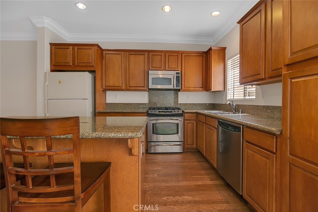 AMAZING OPPORTUNITY TO MAKE THIS YOUR NEXT HOME! Located in Northridge in the exquisite "Vantaggio Community." This elegant 3 bed and 2.5 bath offers a light and bright open floor plan with 9' ceilings, featuring gleaming hardwood flooring throughout, formal living room with gas burning fireplace that opens up to the kitchen and dining area perfect for entertaining guests. The Gourmet kitchen is highlighted with a spacious center island, granite countertops, custom cabinets and appliances that include a refrigerator, dishwasher, gas range/oven, and a built-in microwave. The large Master bedroom offers a walk-in closet and features an en-suite with jetted soaking tub, granite counter-tops and a separate custom stone tile walk-in shower. Two additional rooms make a perfect guest room or office. Other features include laundry hook-ups on the lower level (washer and dryer included) and attached 3-car garage (one side being tandem). This community offers amenities that include a sparkling pool, spa, and barbecue station. Located across the Northridge Fashion Center, Shopping Centers, Starbucks, Movie Theater and much more. Hurry before it's too late!!