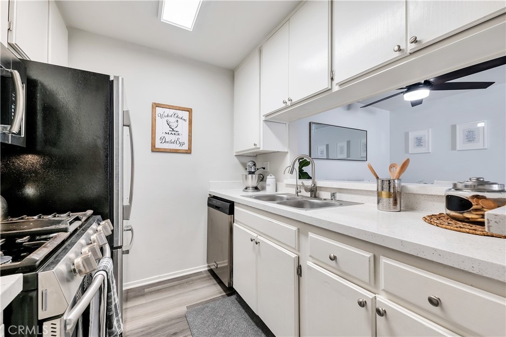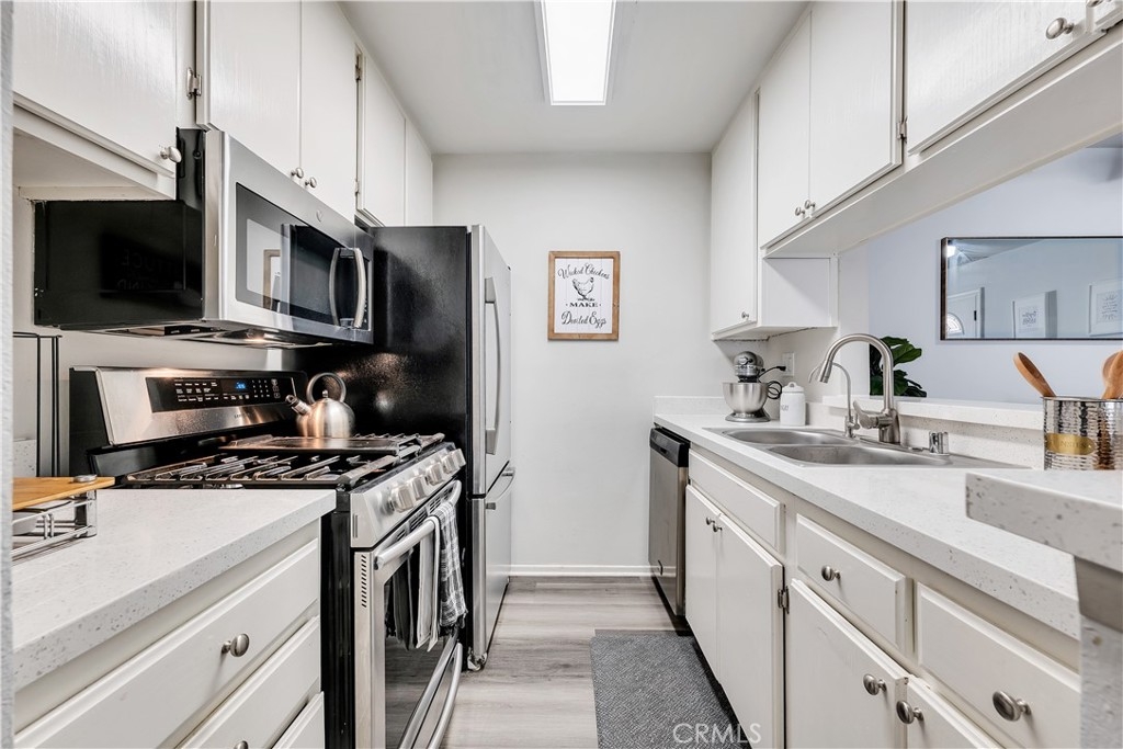 Beautiful Northridge condo you are sure to love! This is a 2 bedroom, 1 bathroom unit that has 852-SqFt of living space. Unit has 2-carport parking spaces. The unit features an open floorplan with upgraded laminate flooring, a a newer furnace and a private balcony off the living room. The kitchen has been updated. It offers sleek countertops, white cabinets and stainless steel appliances that includes a new stove that was added in 2020. There is a cozy dining area and a breakfast bar that is perfect for adding bar stools. Bedrooms are bright and spacious. The larger of the rooms is a primary bedroom that has a private bathroom and a walk-in closet. This is a controlled accessed building that is well maintained, it offers a laundry area, tennis court, gym, recreation room, pool and more! Amazing location! Close to Granada Hills High, Michaels, T.J. Maxx, Sprouts, Northridge Park, Joe's Café and more.