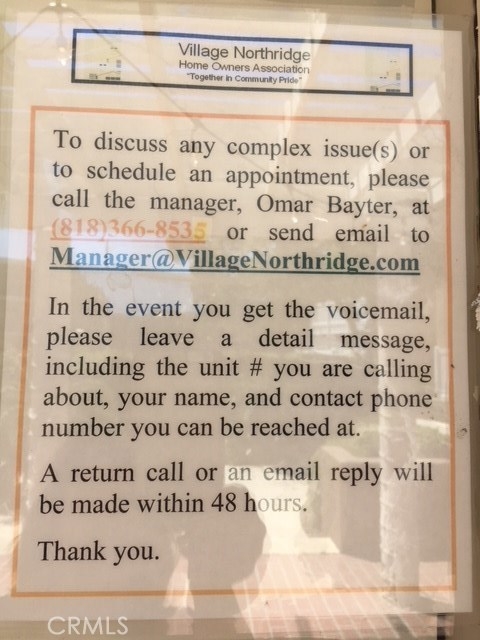 Nice unit on 1st floor. Back of complex, building 5, balcony off the living room, large master suite with walk in closet. Village Northridge community offers a recreation room, pool, spa, gym, BBQ grills and laundry area. HOA covers water, gas, earthquake ins., trash and all common grounds maintenance, two parking spaces behind gates.