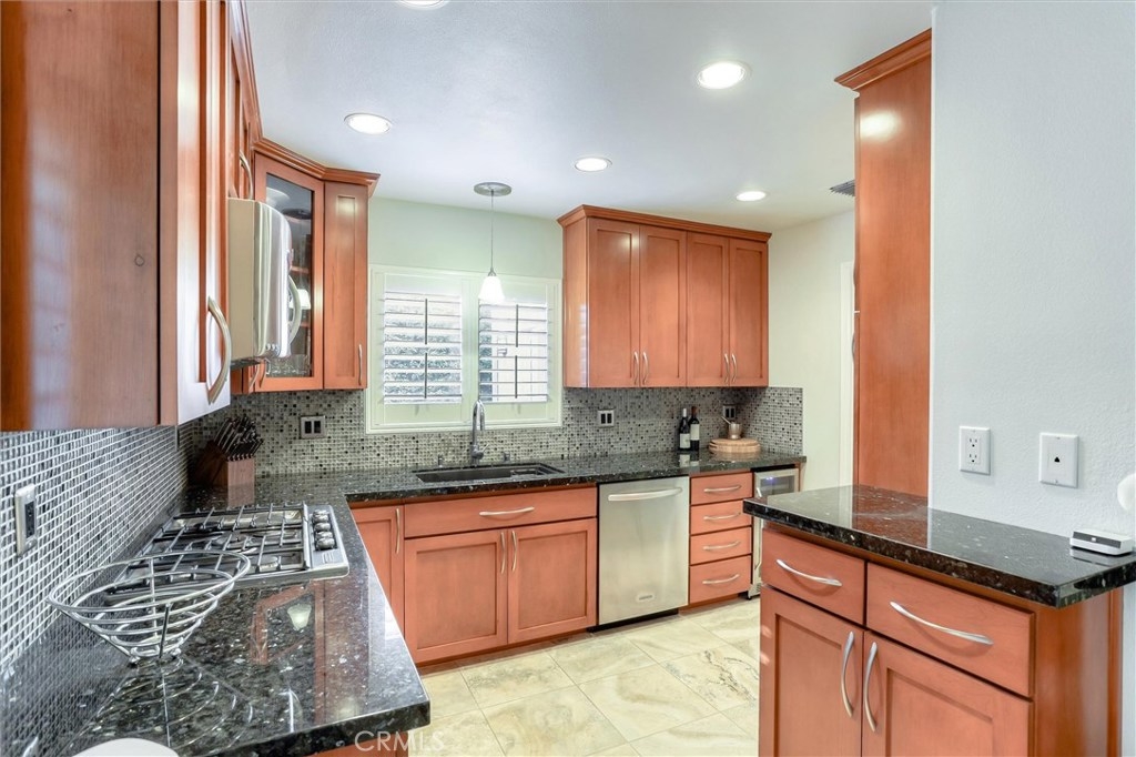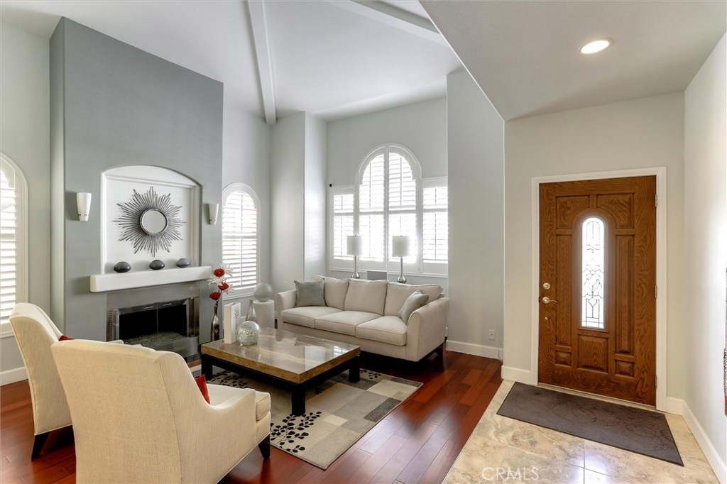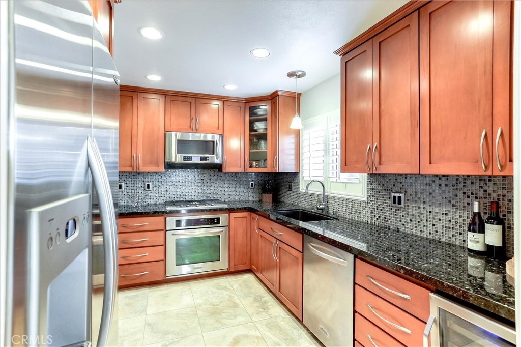 Exceptional! Live your best life! Walk into this unit and immediately feel at home. Warm engineered wood & Travertine floors welcome you as you step over the threshold into the living room with soft relaxing colors and a soaring ceiling. Adjust the custom plantation shutters to allow the sun in or enjoy the glistening light of the fireplace. Lovely decorative columns take you into the dining room with an impressive tray ceiling. French doors with clear view retractable screens take you out to the large stamped concrete patio. There's plenty of room for your BBQ and patio furniture. What's going on in the kitchen Chef? Why, stainless steel Kitchen Aid appliances of course, granite counters, Mosaic glass backsplash, convection microwave, wine fridge, custom honey Shaker cabinets with under cabinet lighting, soft close drawers and pull out shelves. Awesome plantation shutters with a twist (?) Nest thermostat, custom cabinets in the coat closet, laundry in the 2 car attached garage. You may want to take off your shoes when you go upstairs as your toes will love the plush deep pile carpet...ahhh. Natural light comes through the skylight in the stairwell. You'll love the custom stainless look banister, pretty cool right? Shhhh, it has Ferrari paint on it. Come on, you know you love it! Rest well in the master bedroom with en suite, large walk in closet and a sitting area. There's so much more. Granada Hills High School & Nobel Middle School. A wonderful place to call home.
