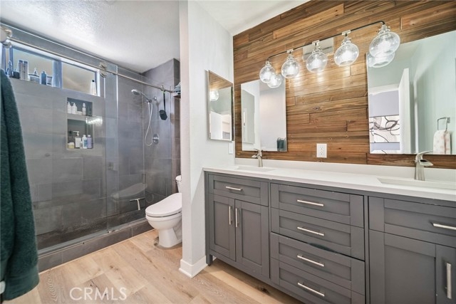 The ONE you’ve been waiting for!!! Highly sought after 3 Bedroom, 2.5 Bathroom North Park Townhouse! Desirable interior location offering 2,054 sq. ft. of comfortable living space - this floor plan is as flexible as it is functional, with an optional upstairs den / 3rd bedroom (just needs a closet) and a downstairs formal dining room that can be used as a home office or more, it’s the perfect fit for any of your needs. This wonderful unit offers smooth ceilings, plantation shutters, beautiful luxury vinyl wood flooring throughout, and nice recessed lighting. There is a cozy gas fireplace and vaulted ceilings in the living room along with 2 sliding glass doors that lead out to an expansive rear patio, perfect for summer BBQ’s and outdoor dining. The gorgeously remodeled kitchen is sure to please any home cook with its beautiful quartz counter tops, an abundance of cabinet and counter space, and quality stainless steel appliances, all looking over a convenient breakfast bar and a spacious eating area with an additional sliding glass door to the back patio. Upstairs is where you will find a private primary suite with a relaxing balcony, his & her closets (one is a walk-in) and a remodeled en suite bathroom with dual sinks and beautiful designer touches. The secondary bedrooms are ample sized and the hall and downstairs guest bathrooms have both been updated. Direct access 2 car garage with oversized laundry area for extra storage, central air & heat with Nest thermostat, plus newer water heater. This gated community offers guest parking, pool, spa and tennis court. Within minutes to Northridge park, shopping, dining, gym’s, and easy freeway access! BONUS: local schools for this property are Nobel MS and Granada Hills Charter HS. This one will not last long!
