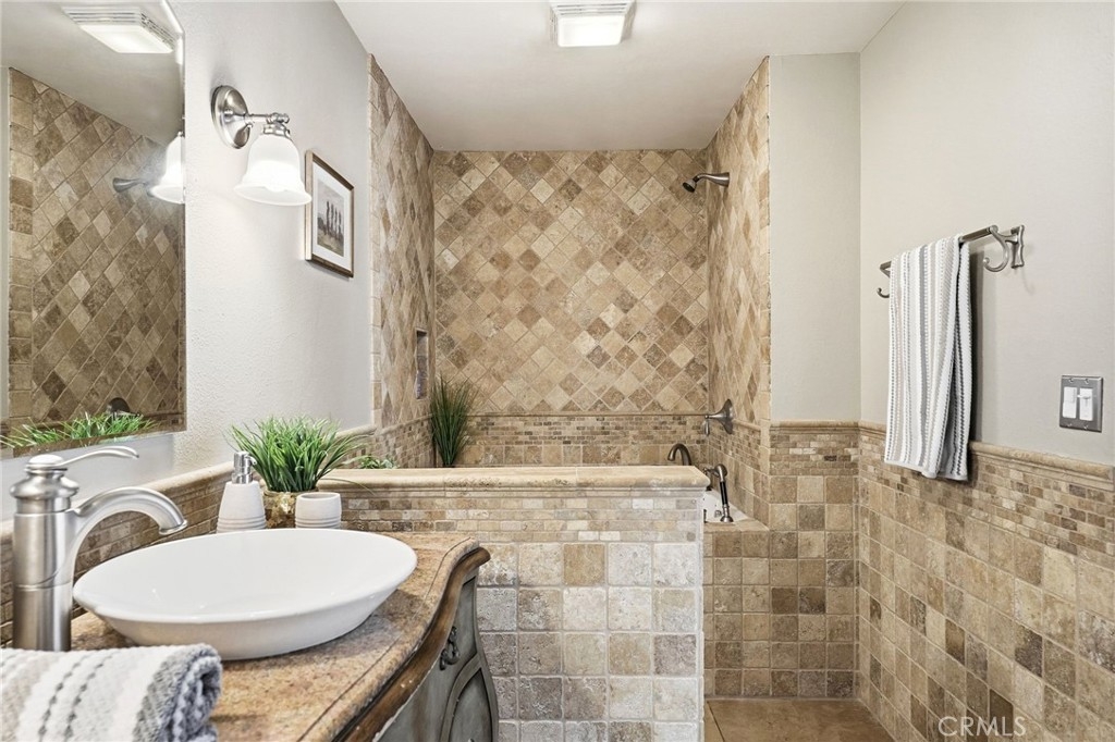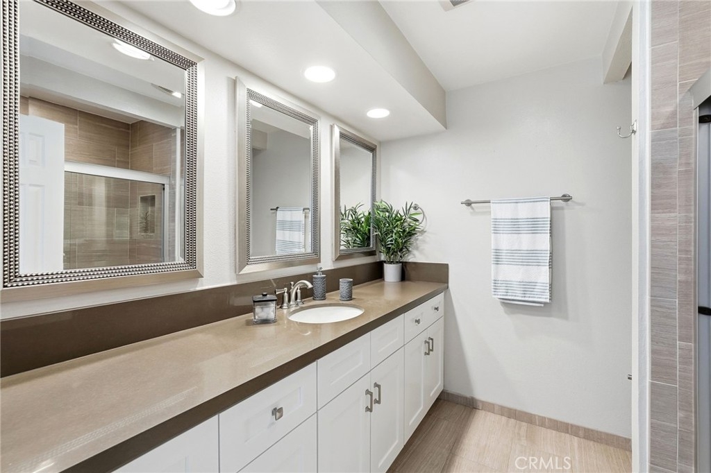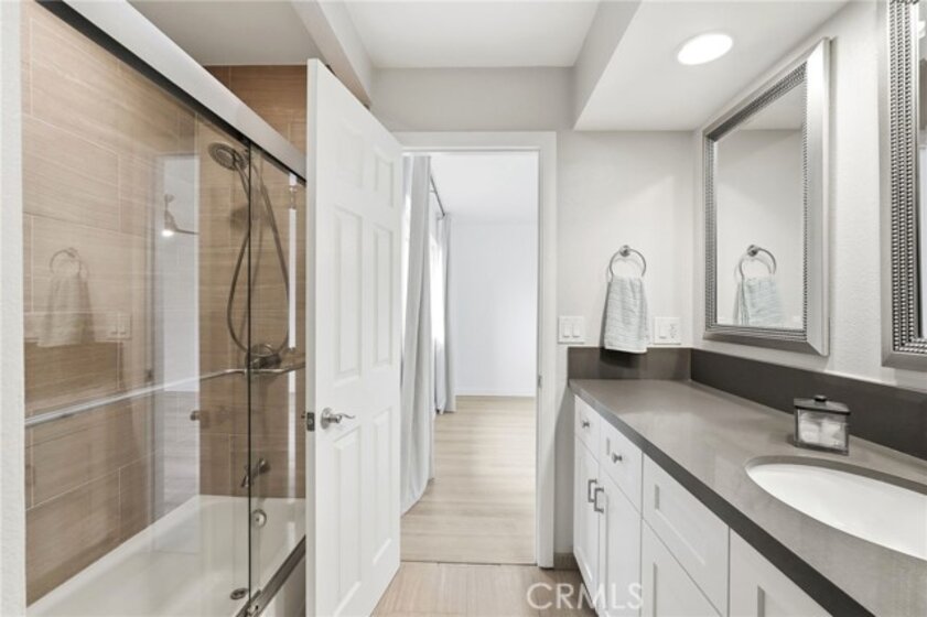 Welcome to this beautifully updated townhome in the desirable Devonshire Village community. This move-in ready townhome features updated luxury flooring on the second level and two spacious primary suites - each with its own private en-suite bathroom. One suite features a large, attached walk-in closet, custom vanity, and deep soaking tub, while the other offers pleasant tree views, large walk-in shower, and sleek quartz vanity with ample storage and counter space. Located in the interior of the complex, this home offers a peaceful environment away from street noise. The main level features a spacious living room, cozy fireplace, and wet bar, creating an inviting space for entertaining. The pristine kitchen includes granite countertops, stainless steel appliances, and ample cabinetry. Enjoy year-round California living in your private patio, perfect for outdoor dining or a BBQ setup. Additional conveniences include a 2-car garage with storage, plus in-garage laundry. Devonshire Village offers resort-like amenities, including two large pools and spas, lush landscaping, and well-maintained walkways. HOA covers water, internet, and cable. Guest parking available throughout complex (by permit). This home is located near the award-winning Granada Hills Charter High School, Granada Village shopping, restaurants, grocery stores, and the popular weekly “Grubfest” food truck event. Move-in ready and ideally located—this home offers comfort, convenience, and exceptional community amenities.