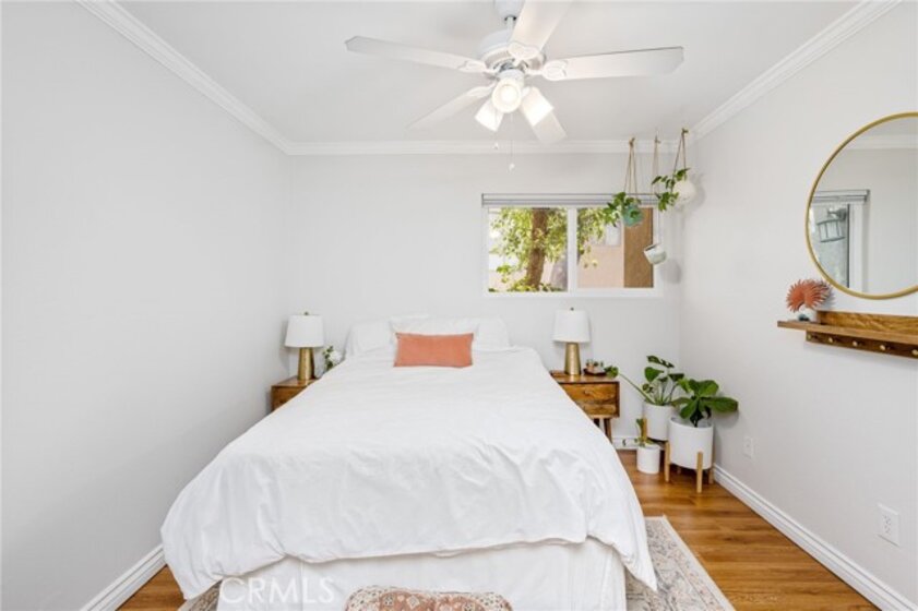 This modern turnkey condo is the ultimate representation of stylish contemporary living, just waiting for you to move in and create new memories! Located in the secure Northridge Village community, this meticulously maintained 2-bedroom, 1-bathroom unit on the lower level boasts 852 sqft of bright, open living space. The living room and dining area flow seamlessly together, offering plenty of room for relaxation and entertaining. The galley kitchen features sleek granite countertops, stainless steel appliances, and a convenient eat-in bar. The bathroom has been recently upgraded with tile flooring and ample counter space. The unit is adorned with beautiful wood laminate and tile floors and has been freshly painted throughout, with stylish feature headboard walls in each bedroom, adding an extra touch of elegance. The primary bedroom features a large walk-in closet. Ceiling fans in each bedroom and a new one in the dining area provide added efficiency. All-new windows throughout and a new sliding door leading to a private fenced-in patio. This condo is ideally situated near Granada High School and Cal State University Northridge. It offers the convenience of two parking spaces and access to community amenities, which include a laundry, barbeque area, pool, and spa, all located in one of the most picturesque parts of the complex. Association includes Earthquake Insurance, trash, water, gas and maintenance of all common areas. This is an ideal starter home for your family!