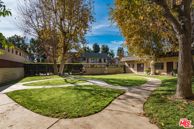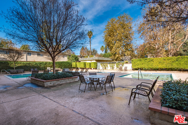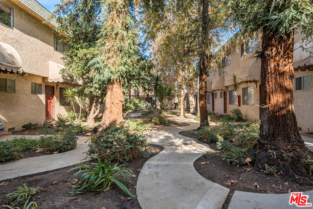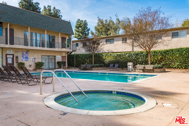 Come home to this lovely townhouse. Sensible design with 1/2 bath downstairs, dining area off living room, tile floors, and slider to enclosed spacious patio with water and electricity. Upstairs floors are beautiful laminate. Both bedrooms have large walk-in closets and privacy. Ceilings are smooth. Newer Lennox central air recently installed. All just painted. HOA recently re-plumbed building and per HOA no assessments are anticipated. Complex has beautiful, large pool and buildings are situated along meandering walkways with beautiful trees.
