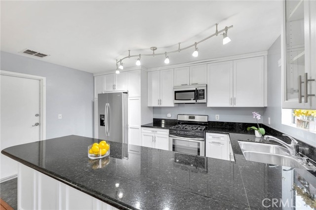 Welcome to a super quiet, gated community where this home is ready for its new owner! As you enter, you are greeted with vaulted ceilings and a cozy fireplace in the living room. This light and bright, 2-story townhome offers a 3rd “bonus” (8x10) room downstairs. You’ll enjoy plenty of storage in the open concept kitchen with white shaker cabinets and gorgeous granite countertops. A half bathroom is conveniently located downstairs along with direct access to the 2-car garage. Upstairs, you’ll find the spacious master bedroom with vaulted ceilings plus a HUGE walk-in closet! The master has its own bathroom and dual vanity sinks. There is another full bathroom and generously sized 2nd bedroom upstairs with an oversized mirrored closet. You will love the large, private backyard patio which has a lemon tree, beautiful low-maintenance plants and plenty of room to host gatherings. The 2-car garage has extra, built-in storage and includes your own washer and dryer. Summer days can be spent in the sparkling pool and spa conveniently located next to your home. You can also enjoy a friendly game of tennis in the community court or have the kids spend time outdoors on the play structure. This community is clean, quiet and conveniently located near shopping, schools and dining! HOA includes water, trash & earthquake insurance. Don’t miss this rare opportunity! Not on main street, set back and separated by island/service street.