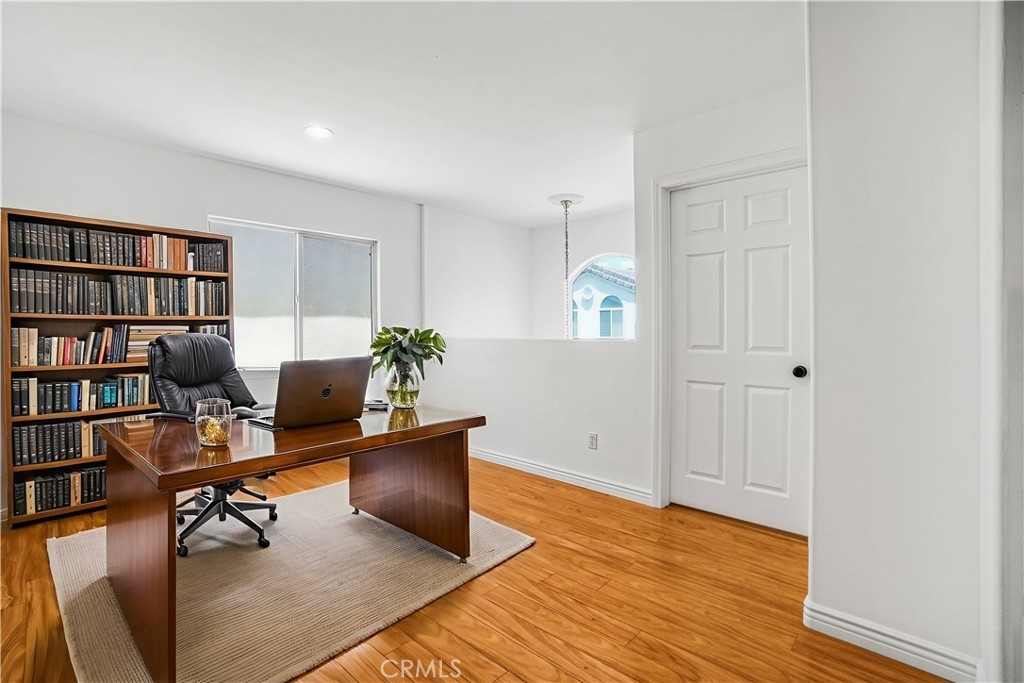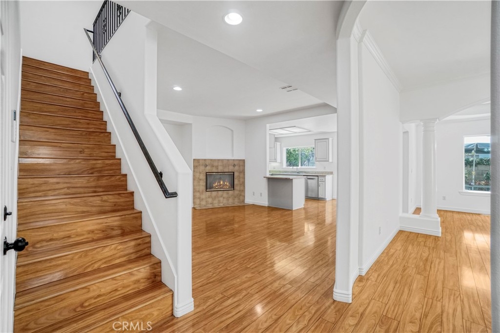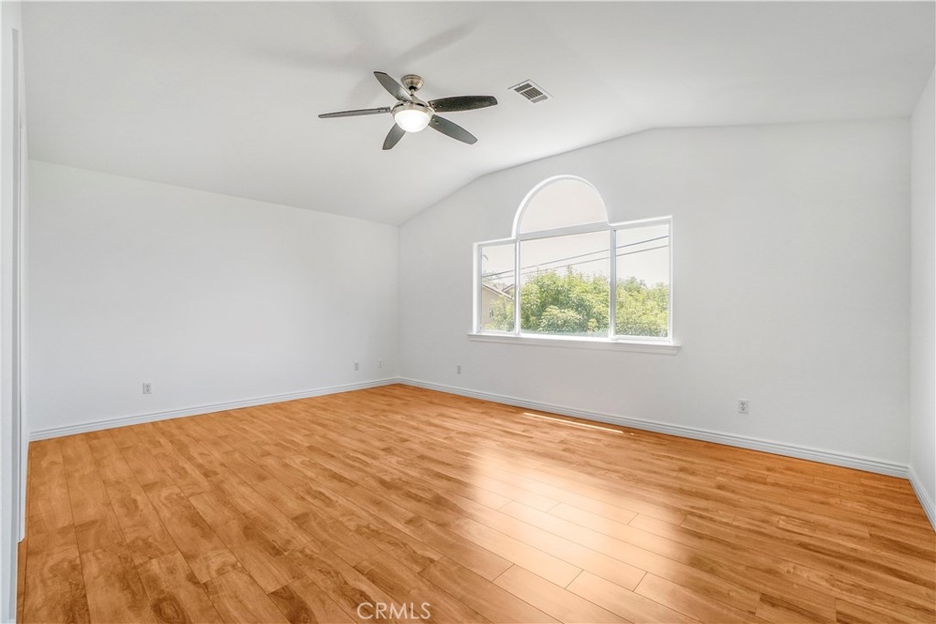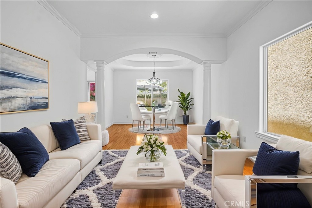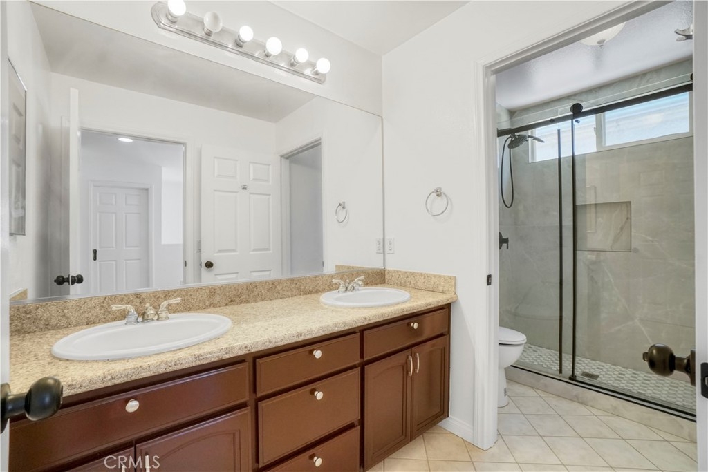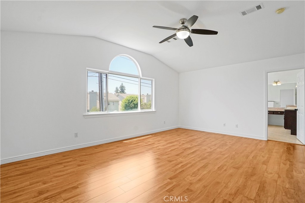 Welcome to this beautifully updated 3-bedroom, 2.5-bathroom home with a versatile loft, located in the highly sought-after gated community of Merridy Estates in Northridge. Offering 2,110 sq ft of thoughtfully designed living space, this home combines modern comfort with everyday convenience—just minutes from CSUN and centrally located in one of Northridge’s most desirable neighborhoods. Inside, you'll find a bright and spacious layout featuring high ceilings and an abundance of natural light. The main level includes a separate living room, cozy family room with gas fireplace, formal dining area, breakfast nook, and a convenient powder room. The recently remodeled kitchen boasts granite countertops, stainless steel appliances, a 5-burner gas stove, and a charming bay window that fills the space with light. Upstairs, the expansive primary suite offers soaring ceilings, large windows, and a peaceful retreat. It features a spacious walk-in closet and a luxurious en-suite bathroom complete with dual sinks, a dedicated makeup vanity, a jetted soaking tub, and a stand-up shower with a built-in sitting ledge. Down the hall are two additional generously sized bedrooms, a remodeled full bathroom with dual vanities, and a versatile loft that can serve as a home office, media room, or play area. Recent upgrades include new upstairs flooring, fresh interior paint, new door hardware, a recently replaced HVAC unit, and solar panels to help reduce energy costs and improve efficiency. Additional features include dual-pane windows and a 2-car attached garage with built-in storage cabinets, an EV charger, and a dedicated laundry area. The backyard is spacious yet low maintenance—perfect for entertaining or relaxing outdoors. Located in the gated community of Merridy Estates, residents enjoy low HOA dues that include earthquake insurance, front yard and common area maintenance, a security camera system, and gated entry. Built in 2001 and move-in ready, this home offers comfort, sustainability, and an unbeatable location in the heart of Northridge.
