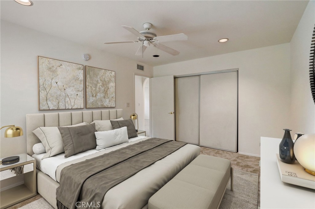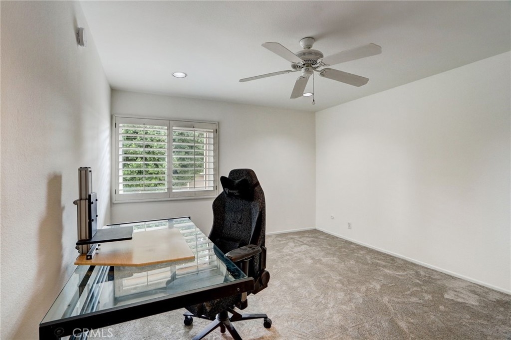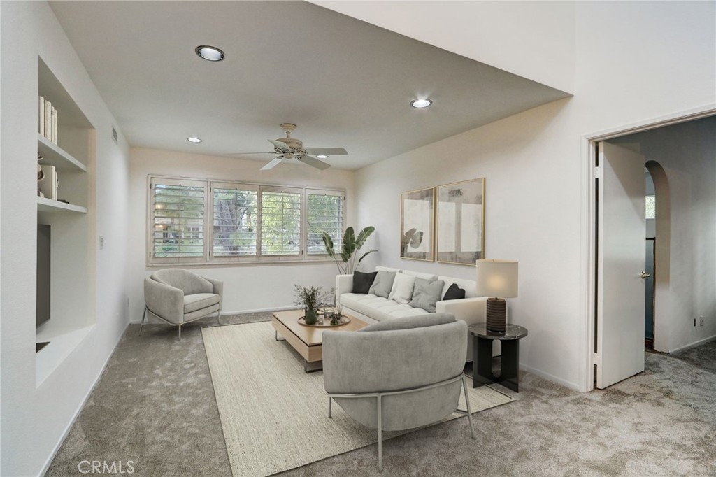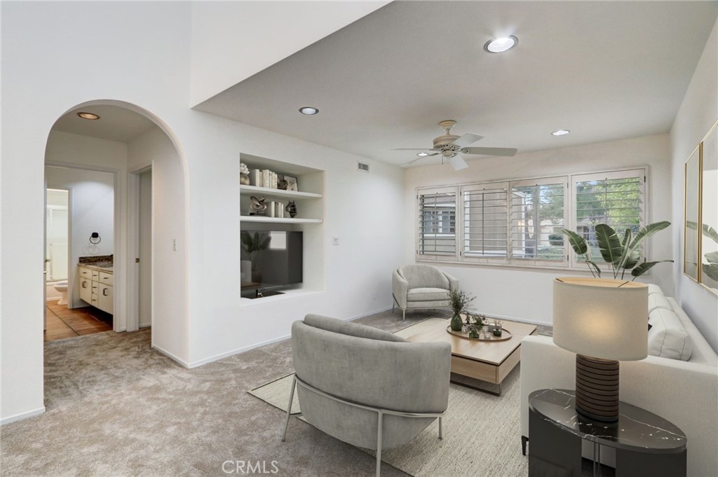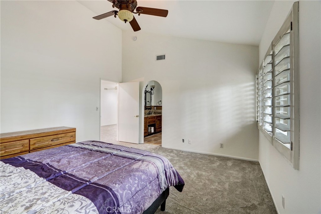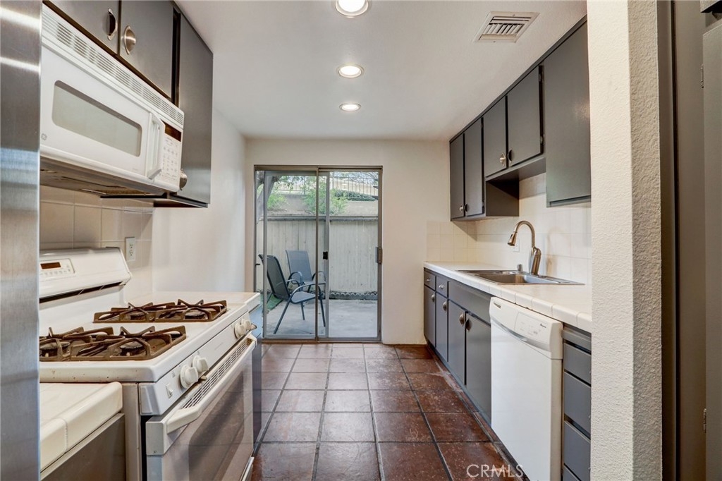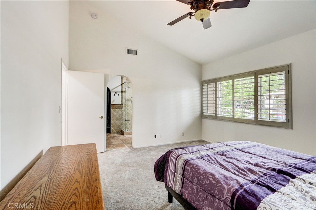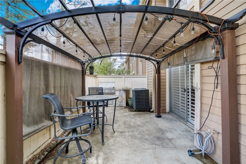 Welcome to your new oasis nestled in a serene community. This remarkable end unit offers an abundance of space and amenities, ensuring a lifestyle of comfort and convenience. As you enter, you'll be greeted by an expansive open floor plan with soaring ceilings, creating a sense of airiness and freedom. The large loft area, akin to having a 4th bedroom, adds versatility to the layout, catering to your individual needs and preferences. Recent upgrades including new paint and carpet breathe new life into the interior, while the master bath presents a haven of relaxation with its Jacuzzi tub featuring jets and a newly remodeled shower. Privacy is a top priority in this residence, as it stands out from neighboring units with just one shared wall and its own private entrance. Relaxation awaits on the patio, where lush hills and trees provide a serene backdrop, offering a cool and secluded atmosphere. Adding to the charm, the outdoor space features an awning and string lights, creating an ideal setting for alfresco dining and entertaining. Plus, there's a built-in natural gas BBQ grill, eliminating the need for propane tanks. Inside, large front windows adorned with shutters flood the space with natural light, further amplifying the sense of openness. Storage solutions abound, with a walk-in closet featuring built-in shelving in the primary bedroom and ample closet space throughout the home. Practicality meets convenience with a 2-car garage and additional guest parking always available. Shelving and cabinets in the garage provide ample storage options, ensuring a clutter-free living environment. This exceptional property boasts access to a wealth of community amenities through its HOA, including three pools, a hot tub, clubhouse, gym, and three tennis courts. Additionally, the HOA covers maintenance of all exterior aspects of the building, earthquake insurance, as well as basic cable and internet services provided by Spectrum. Don't miss the opportunity to experience the epitome of comfortable living in this meticulously maintained residence. Schedule your viewing today and discover the perfect blend of luxury and convenience in this exclusive community.